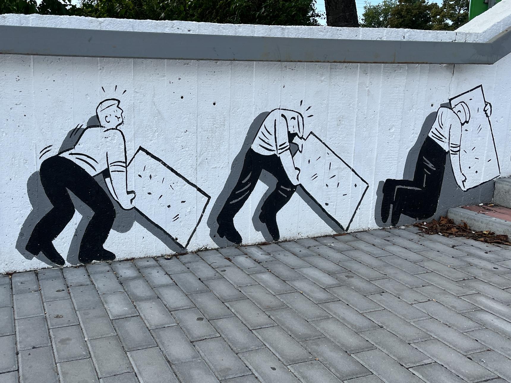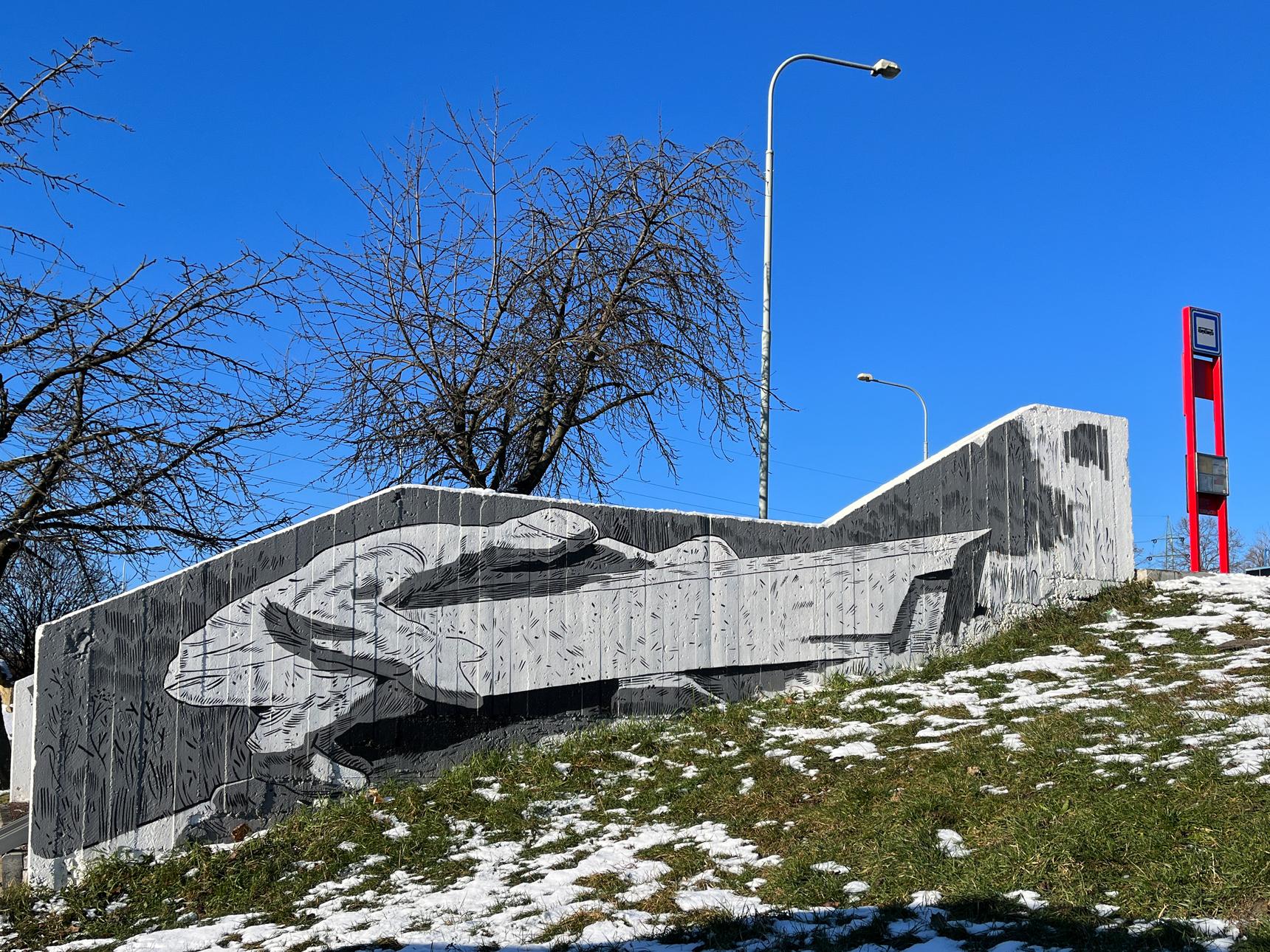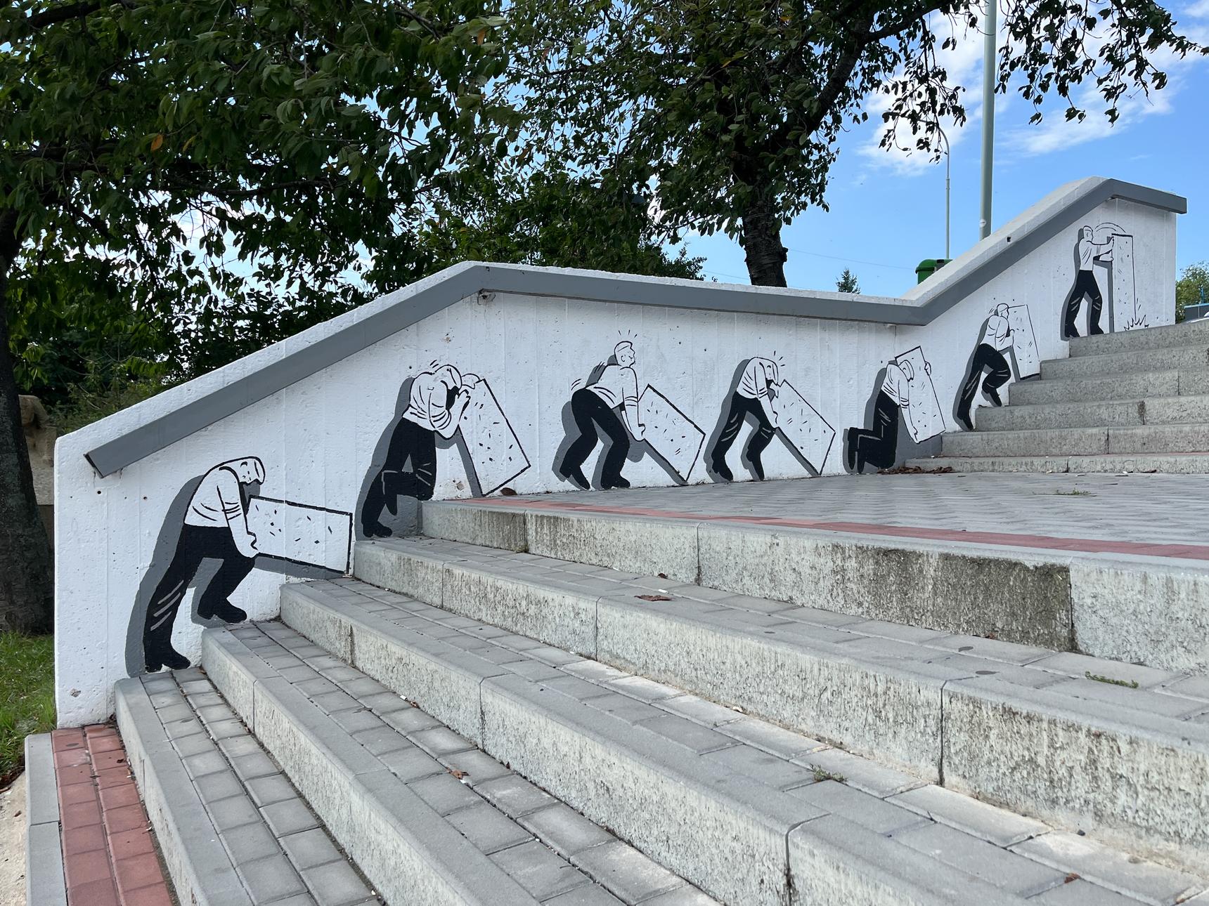 Artwork inspired by the nearby sculpture “Muž s kvádrem” (“Man with a Block”) by Pavel Přikryl (see last picture).