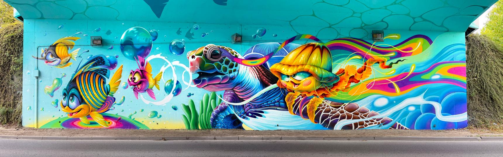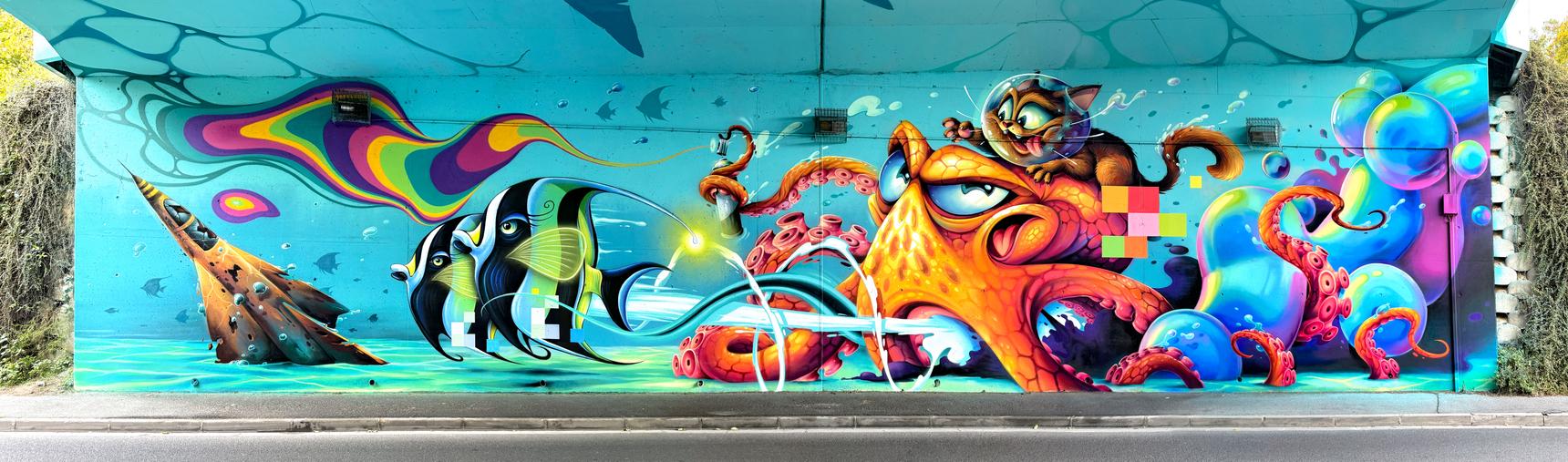 Bridge painting in collaboration between Abys and Céz Art.