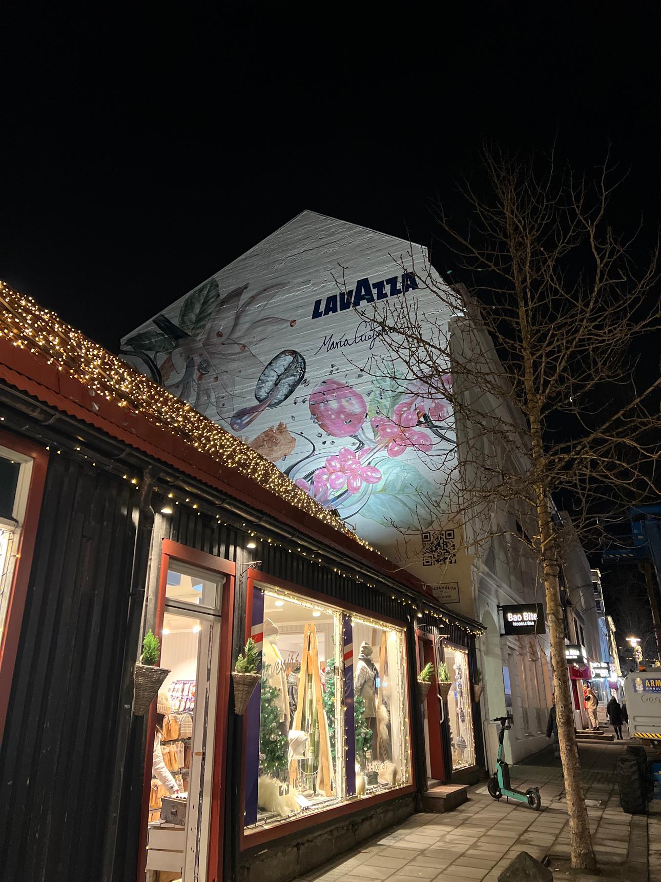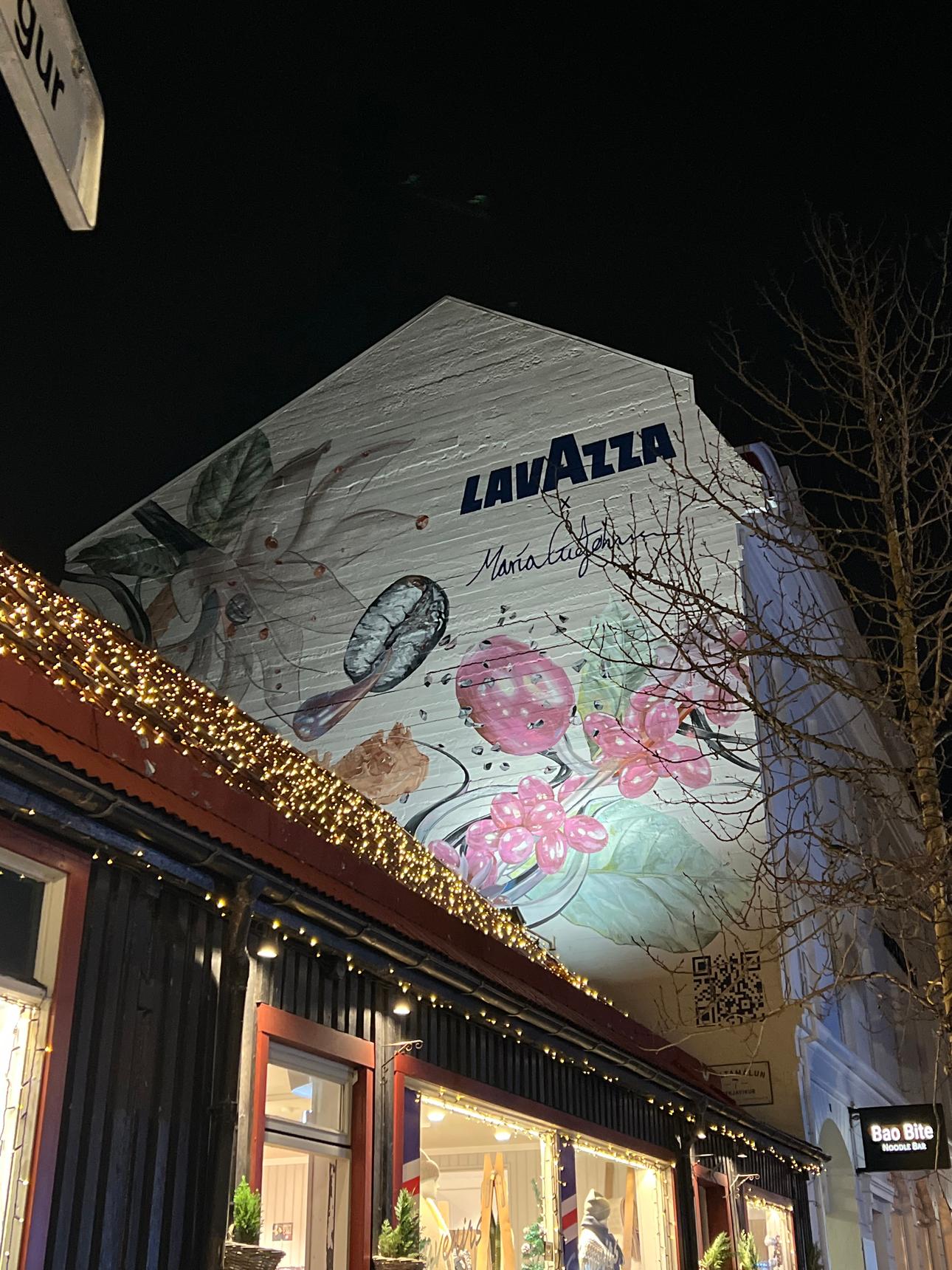 The mural is a collaboration between Lavazza, an Italian coffee products company founded in 1895 in Turin, and the artist Maríu Guðjohnsen.