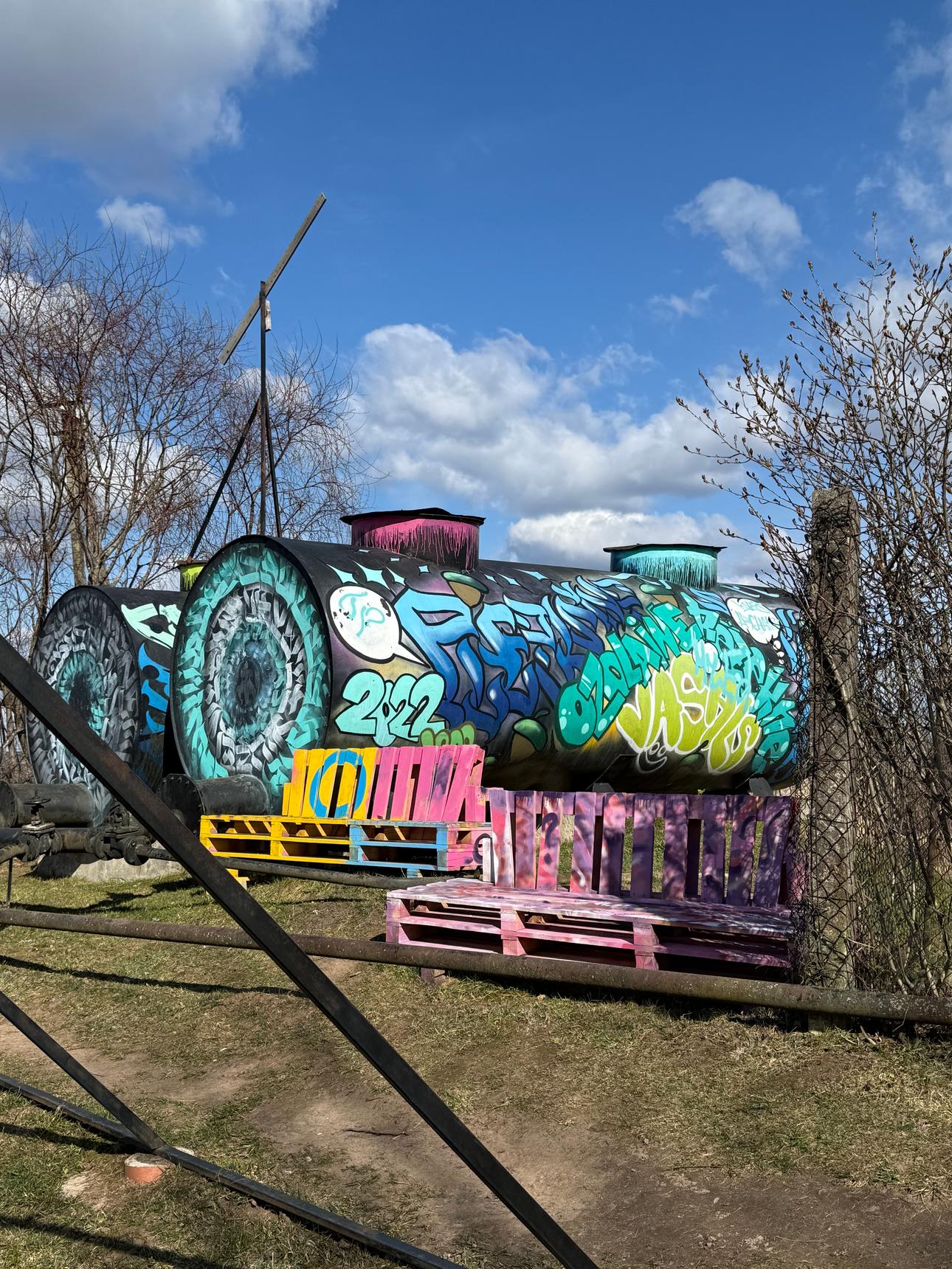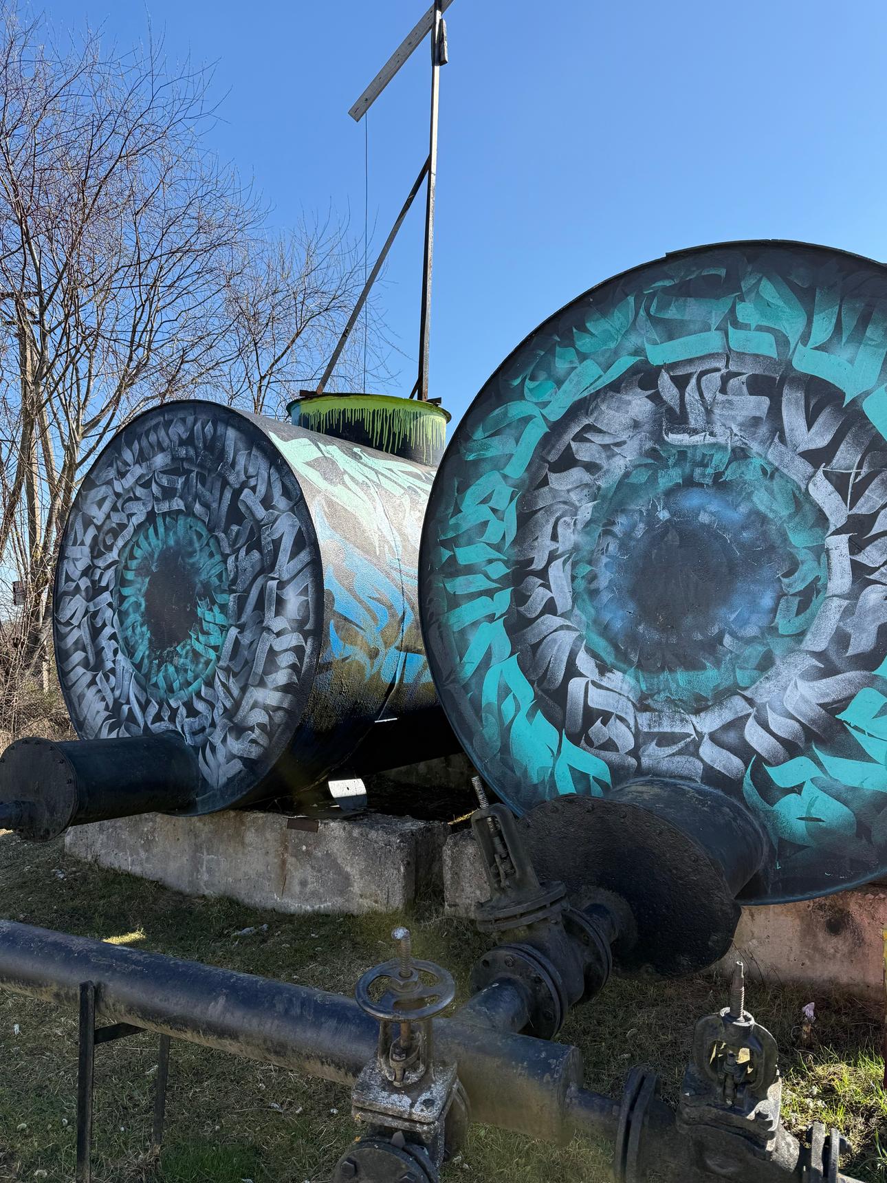 The concept of the location was created by Santa Ostaša. In collaboration with graffiti artists KVĀPS and Archa the stylistic and visual design of the place was developed, with a special emphasis on street art that appeals to young people. The ends of the water barrels feature the anthem of Ozolaine Parish. The calligraphy work was created by Archa.