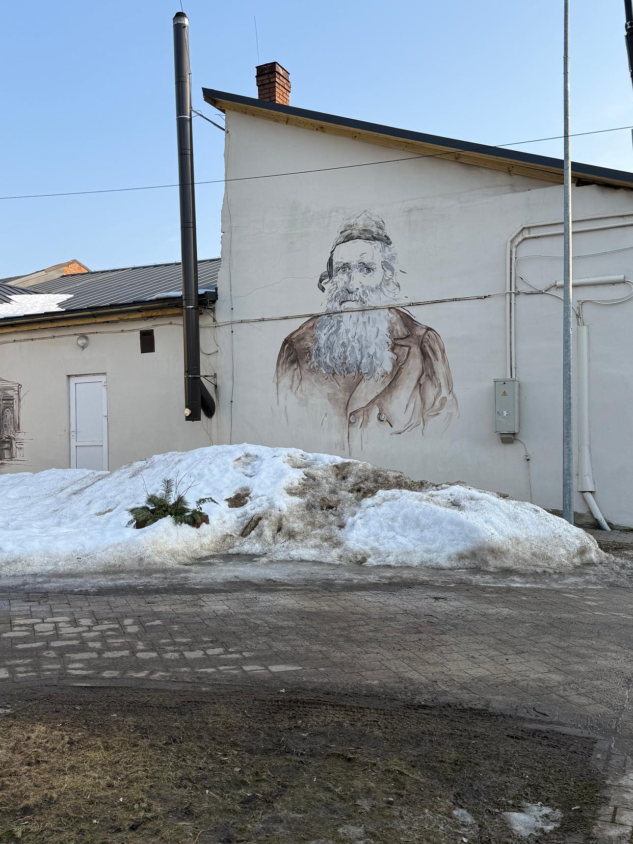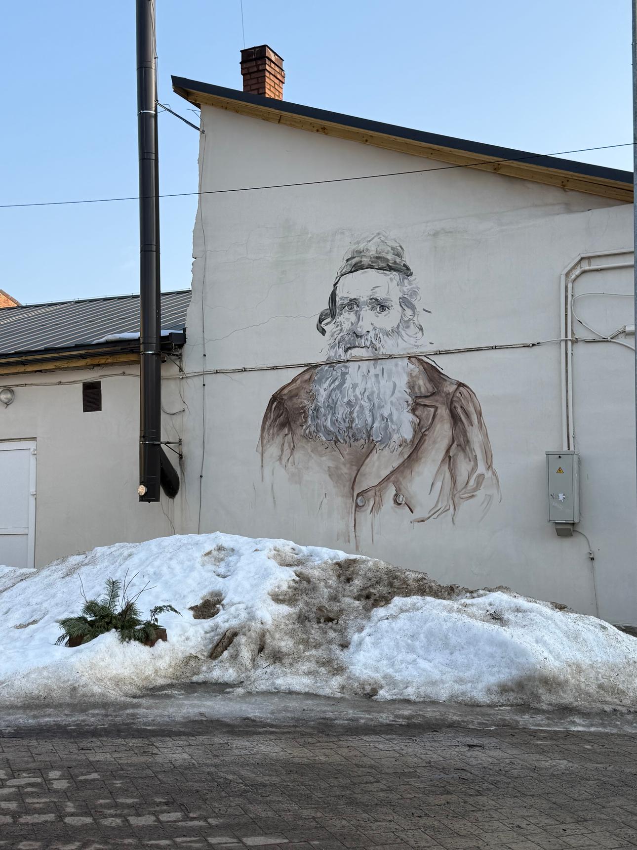 The mural depicts the oldest photograph found in Rēzekne, showing a local Jew.