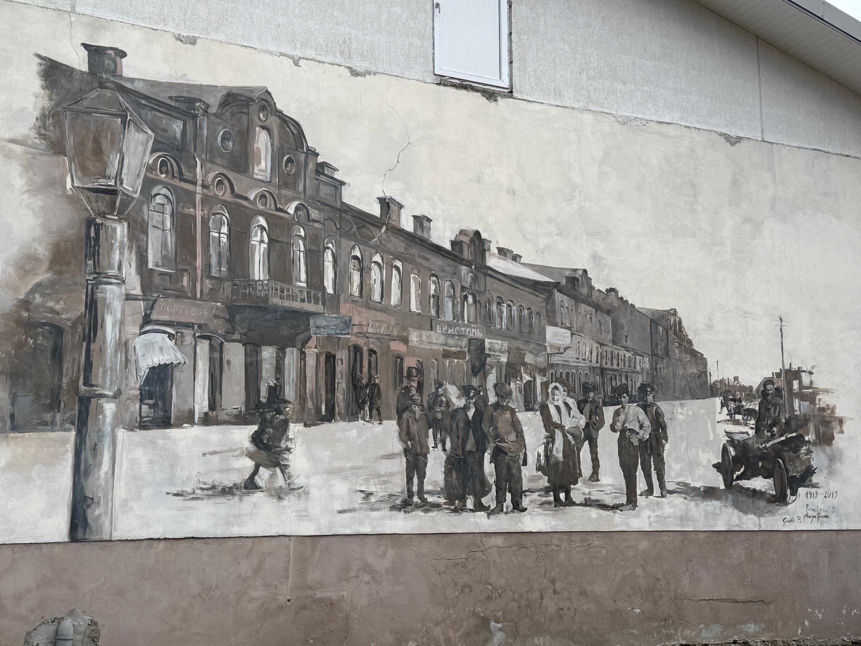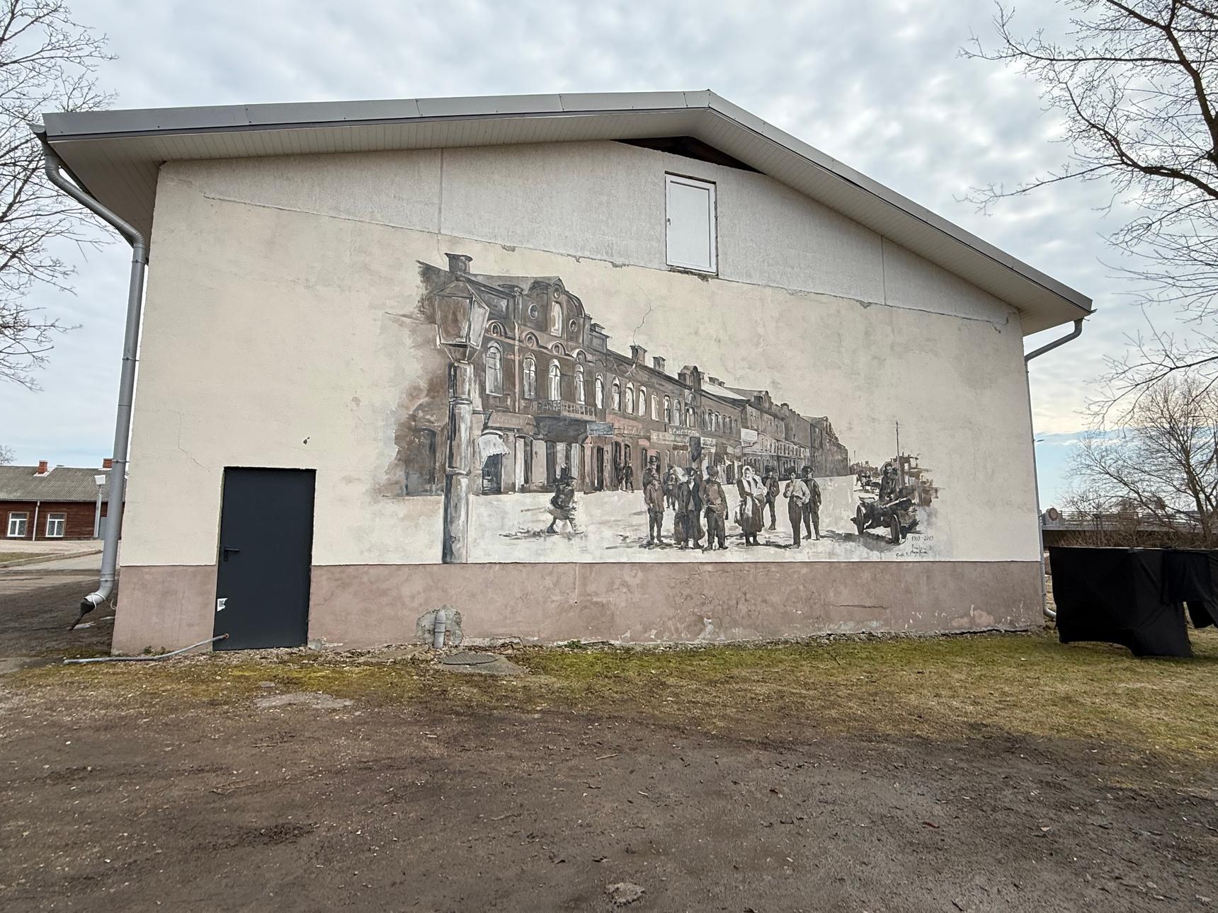 The mural shows the city’s oldest street—Latgale Street—with historic buildings characteristic of the 19th century.