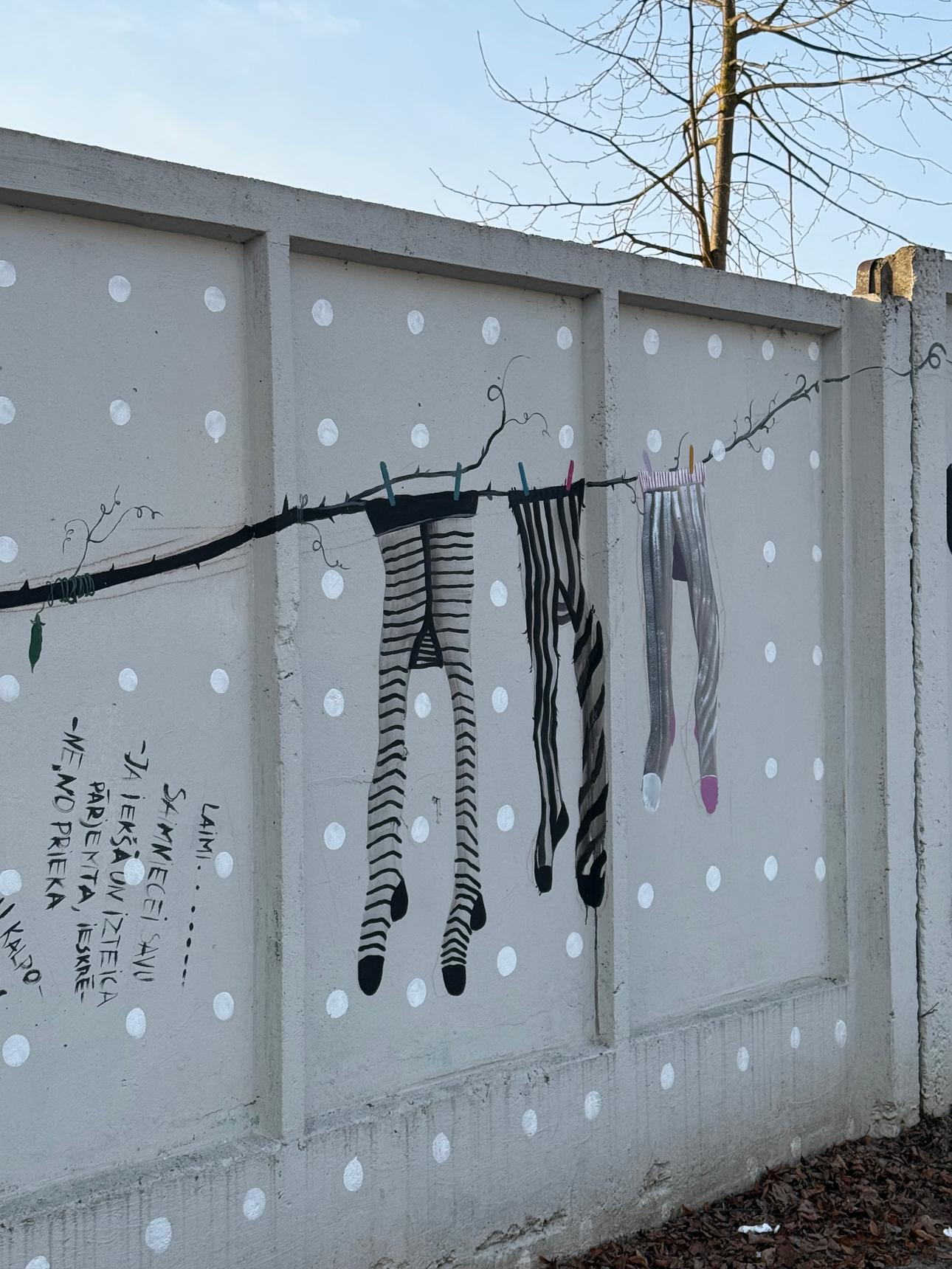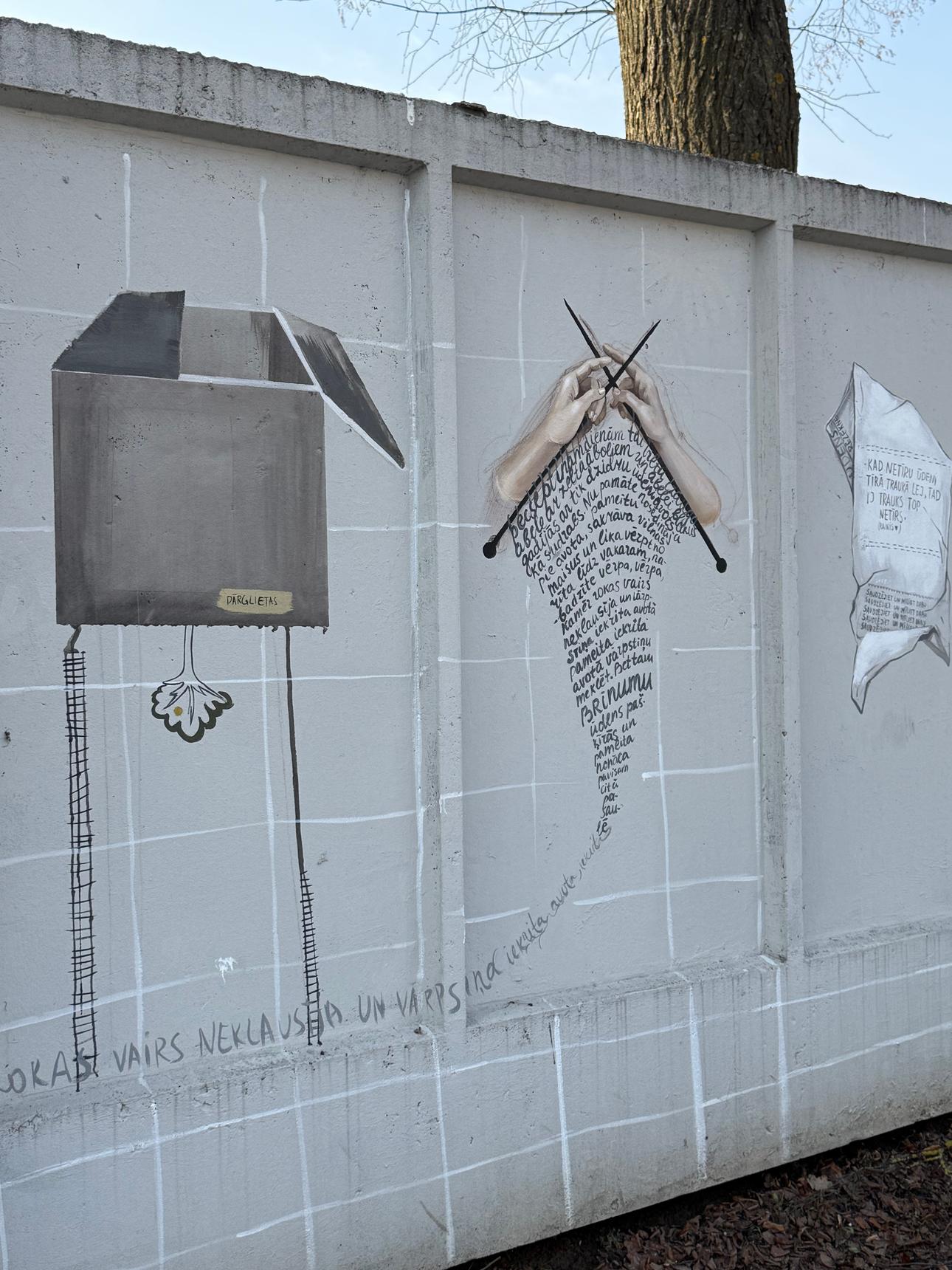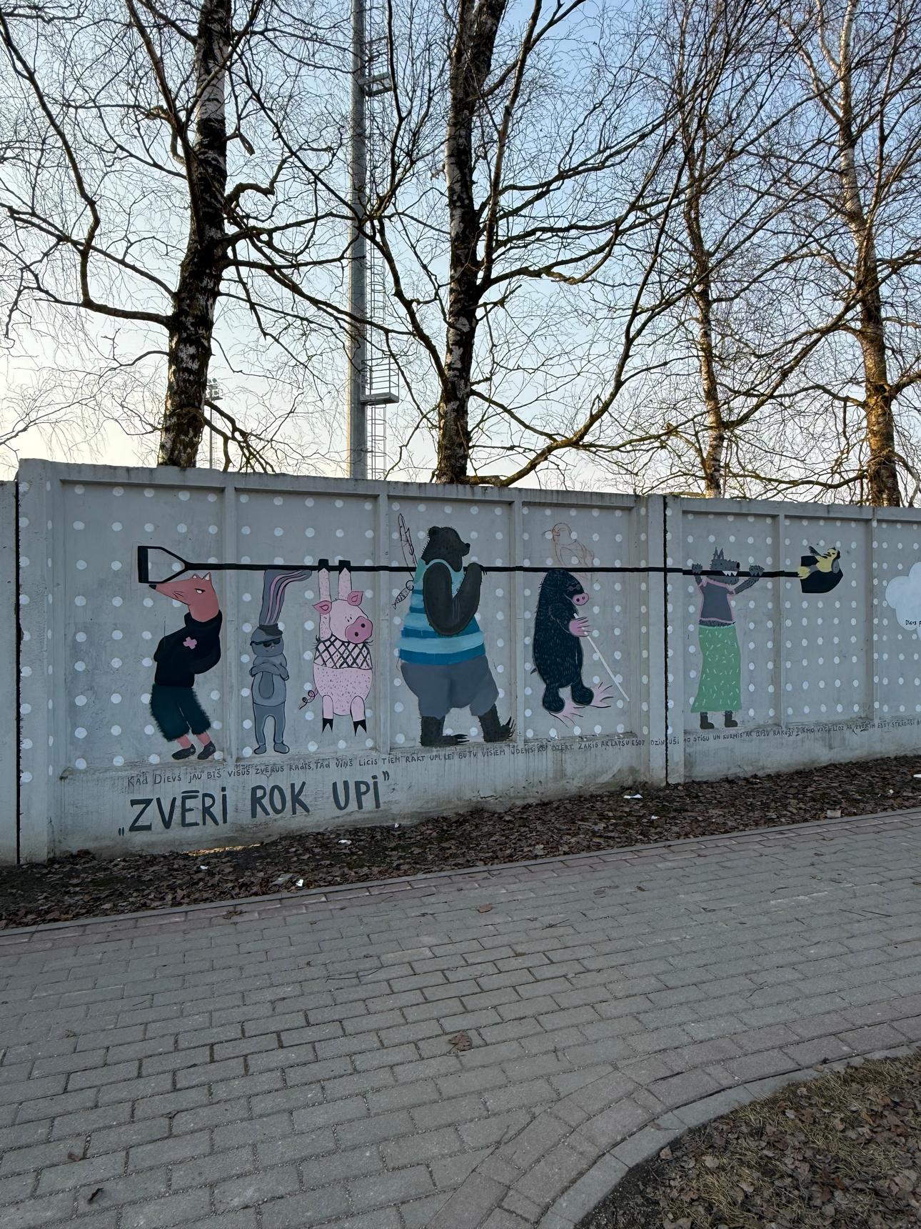 Artwork is placed on a stadium fence opposite Rēzekne Social service on Zemnieku street.