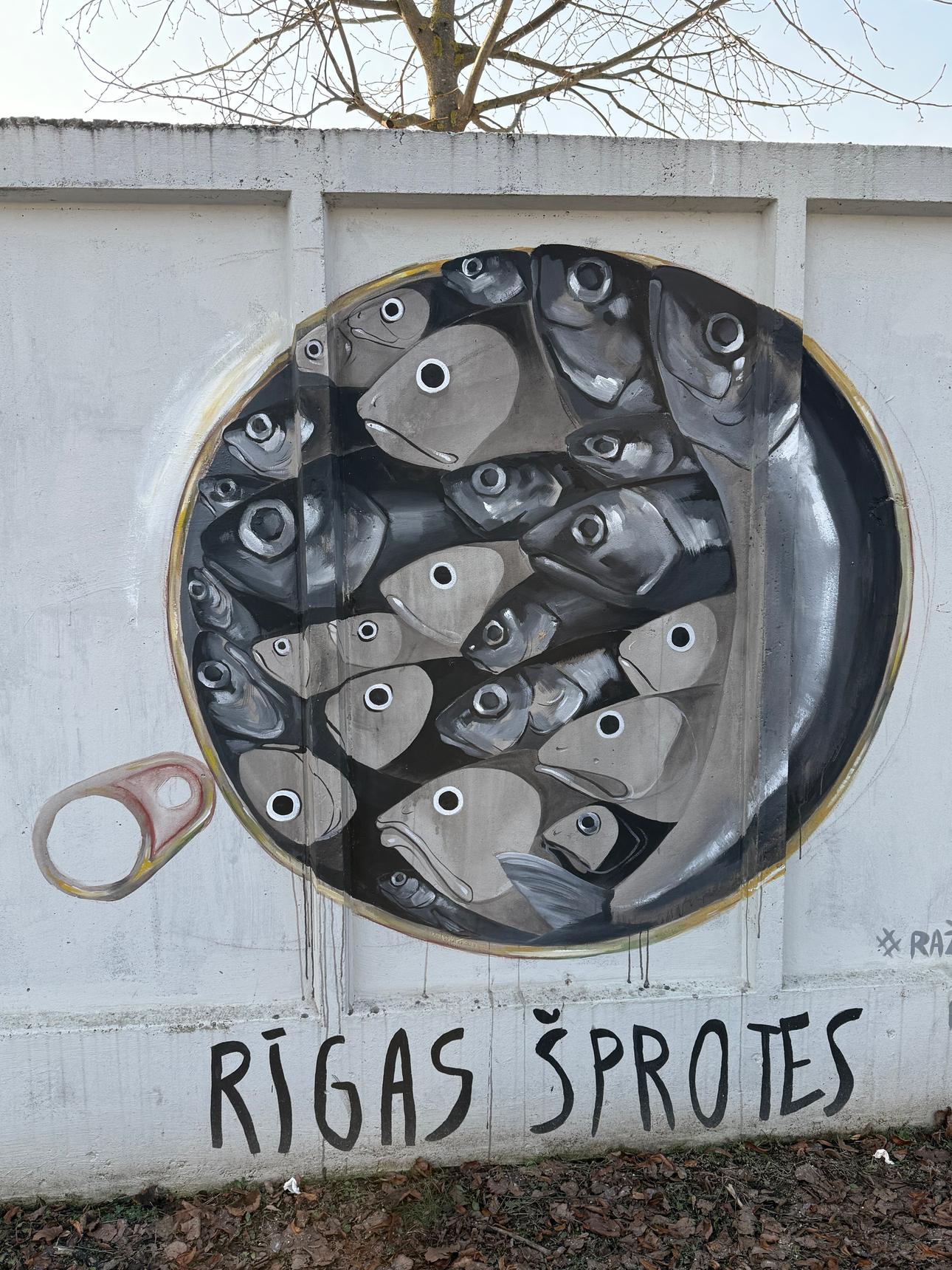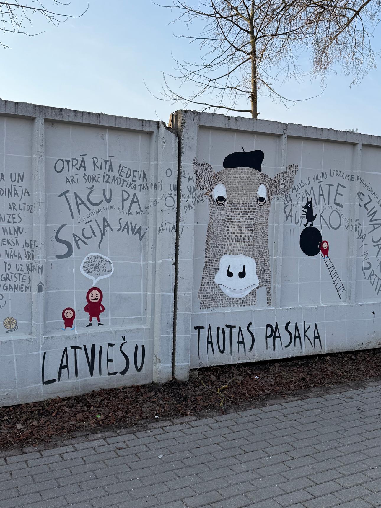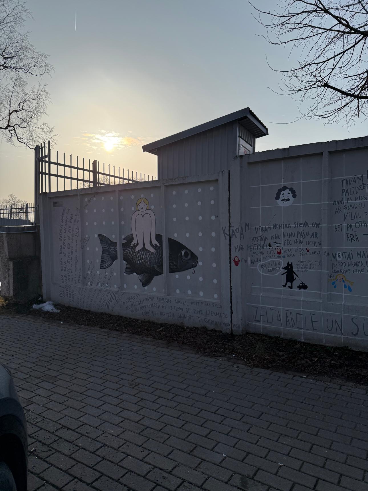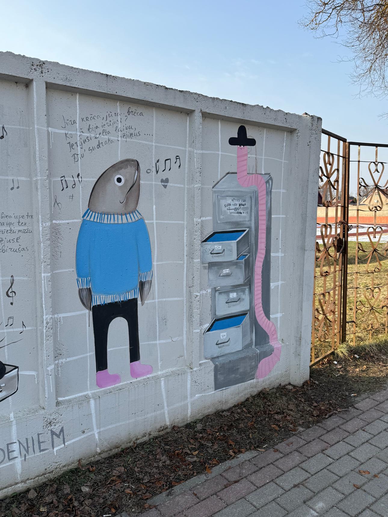 Artwork is placed on a stadium fence opposite Rēzekne Social service on Zemnieku street.