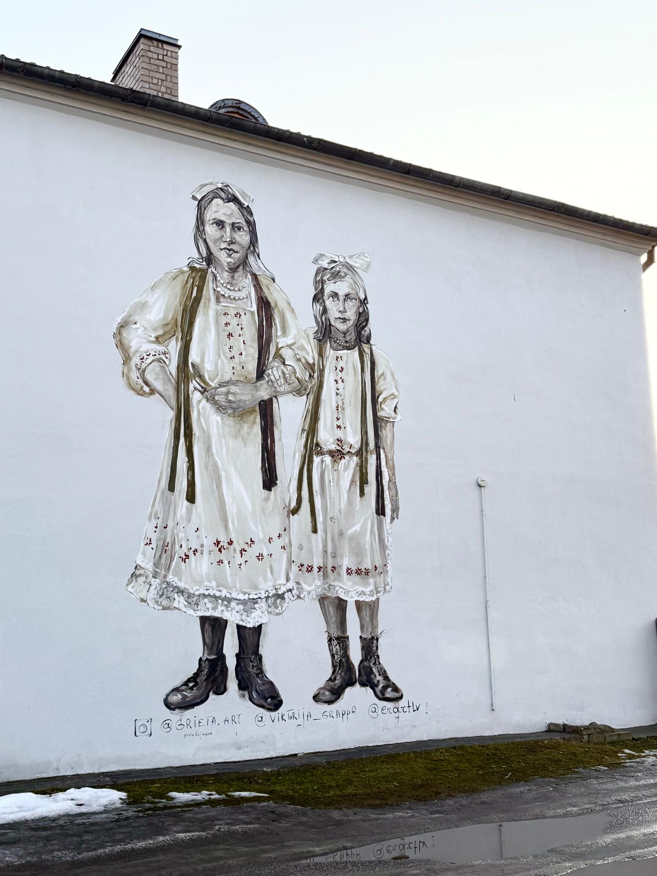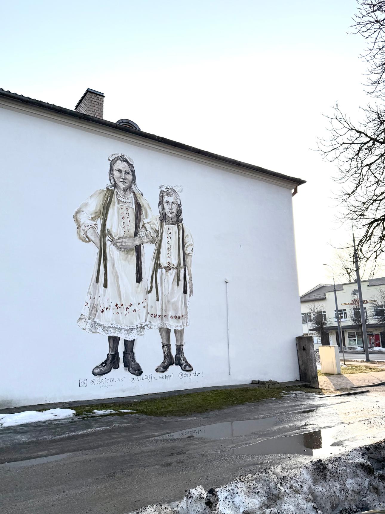 The mural depicts girls (commonly called ‘little sisters’) dressed in clothing characteristic of the early 20th century.