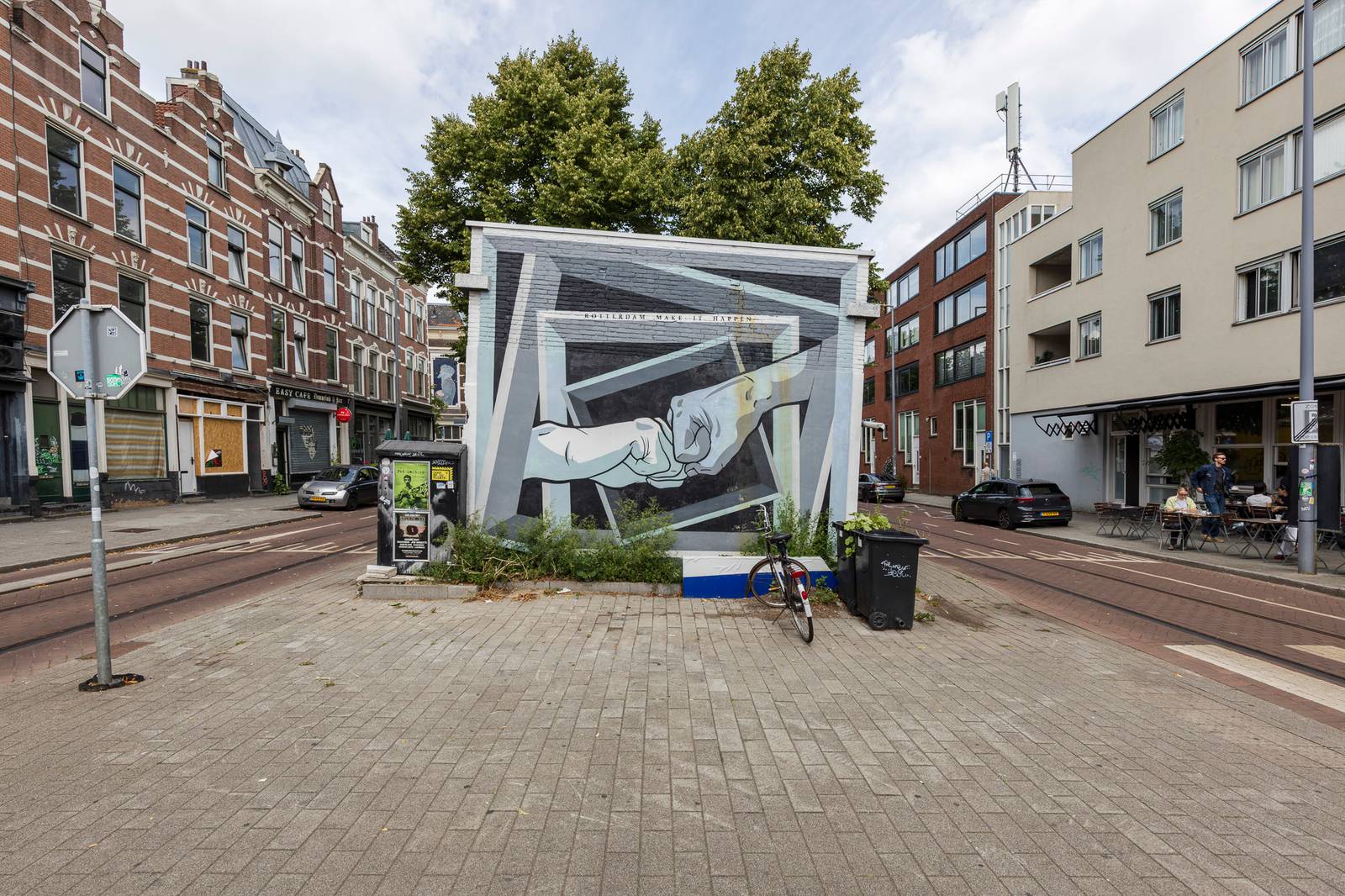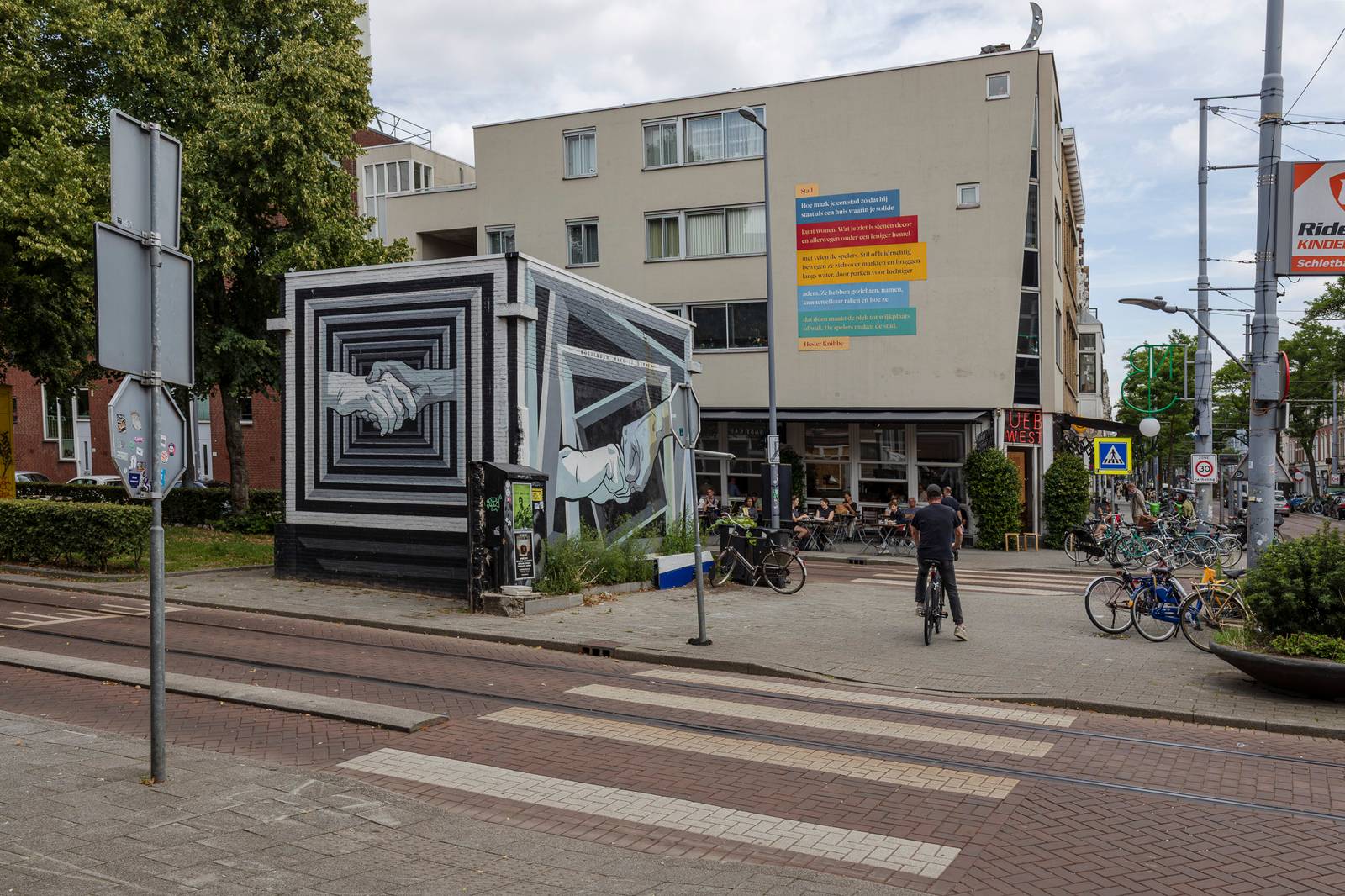 Dit werk is gemaakt in 2020, maar werd pas afgemaakt in 2022 omdat er een bouwwerk in de weg stond van het nutsgebouw waar het op geschilderd is.