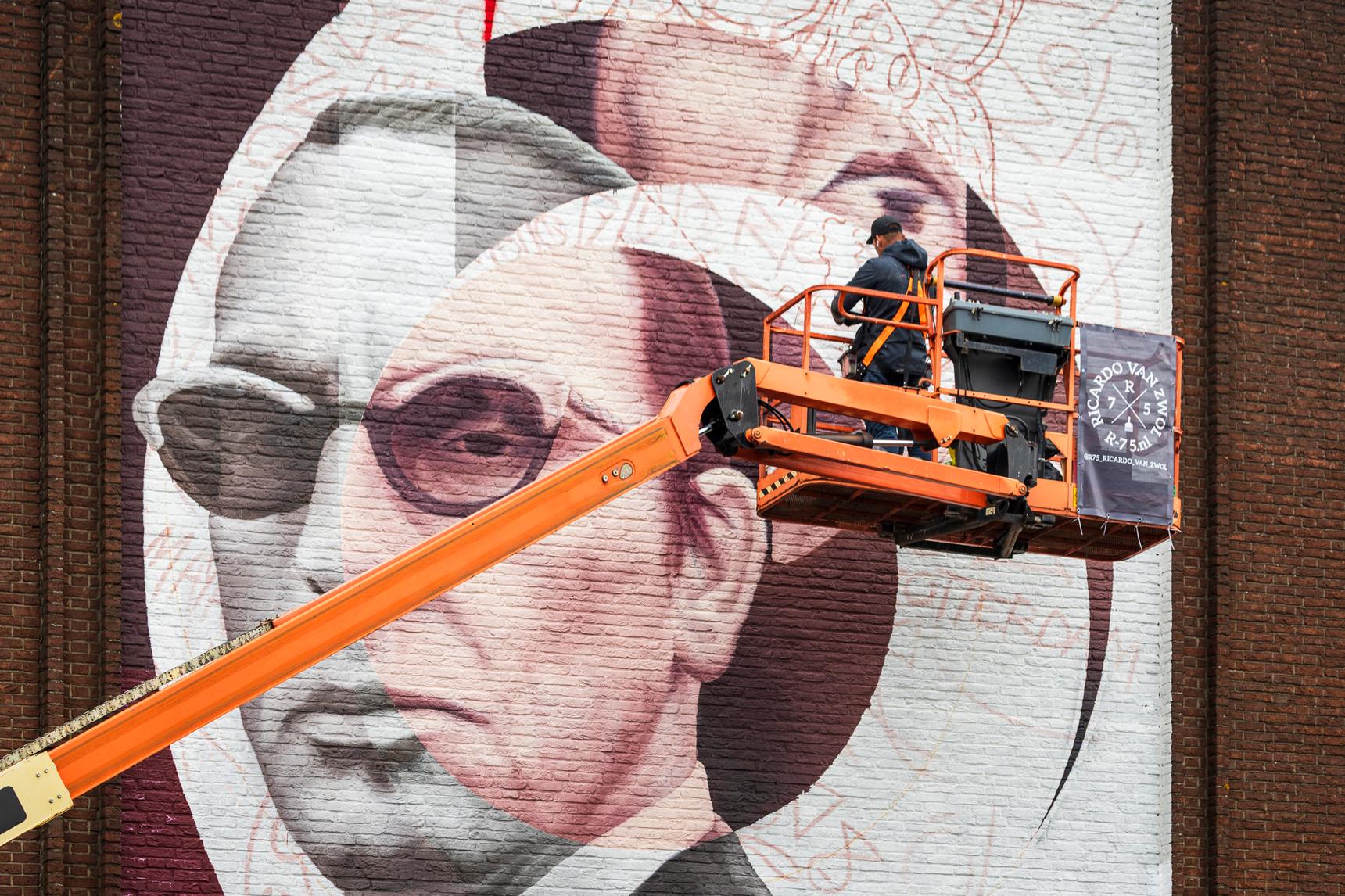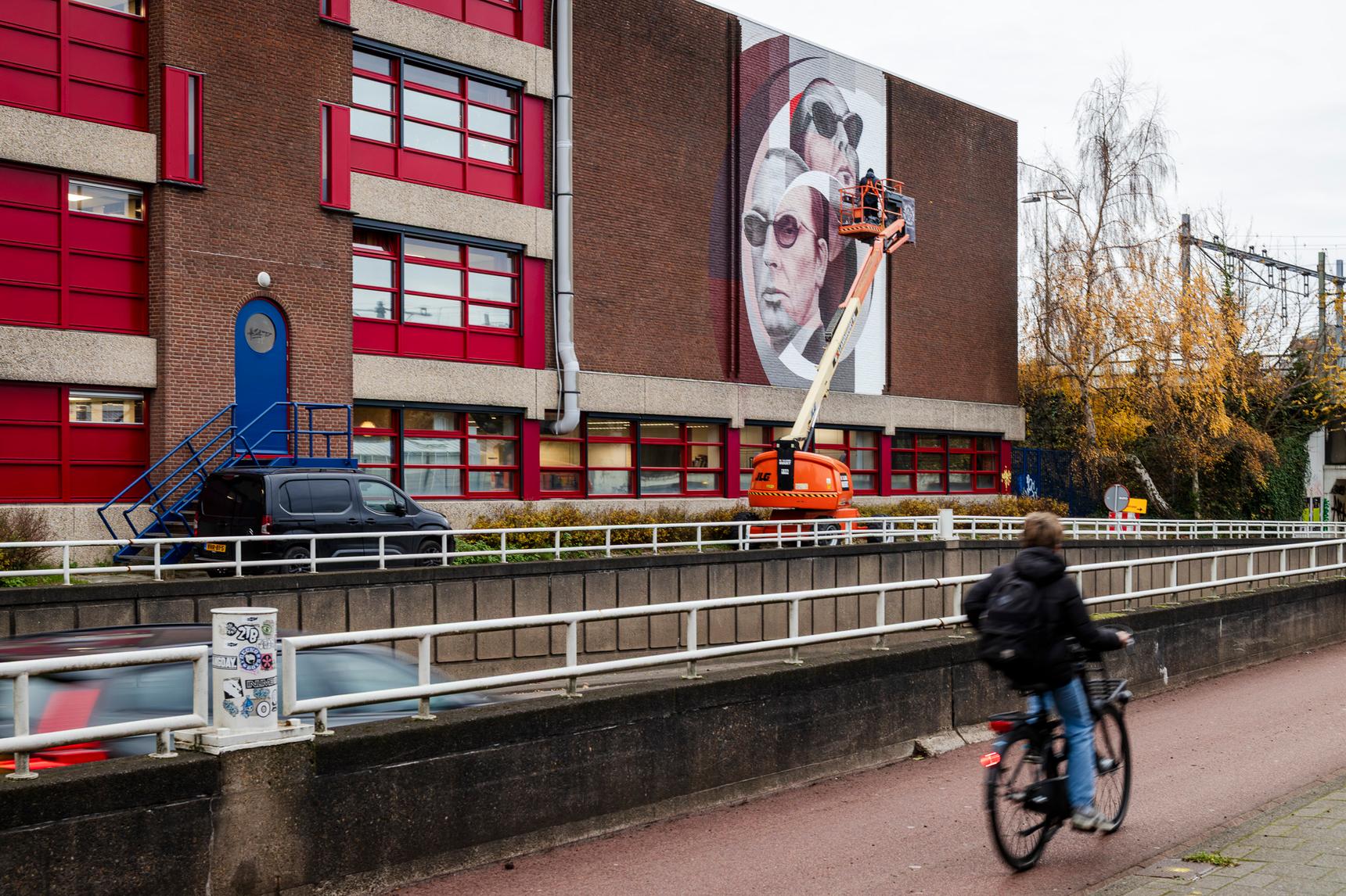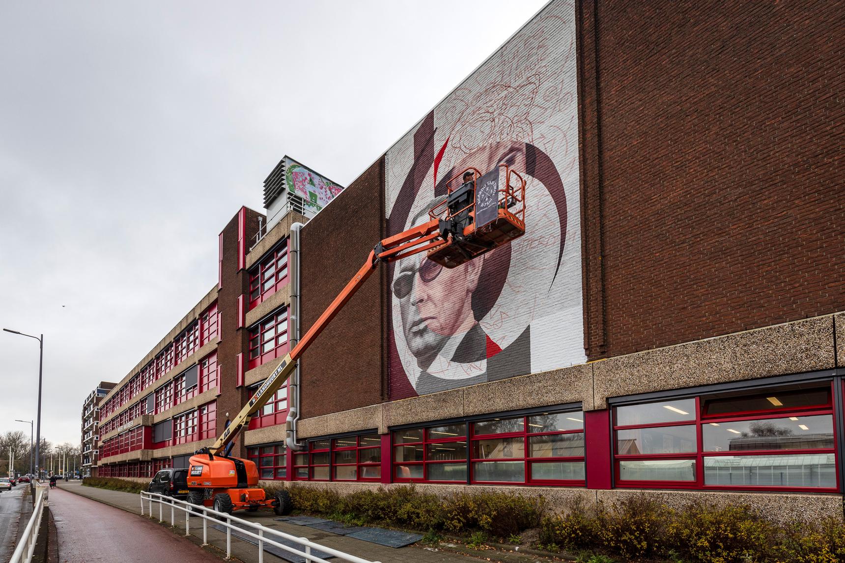 The mural was originaly meant to be released in 2024 when he would have turned 80 years, but like anything involving Deelder; it was not that simple. After the funds for the project had been found, partly through crowdfunding, the wall that was supposed to hold the artwork was deemed unfit. Eventualy this much larger wall was found, so with a years delay the project could be finished. The mural was painted in the cold winter, presenting some more challenges for the artist.