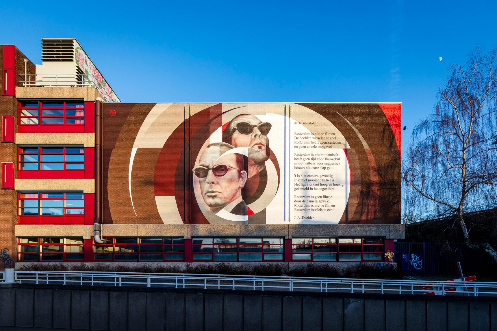 Deze muurschildering is een ode aan de beroemde Rotterdamse dichter Jules Deelder (1944-2019). Naast zijn portret toont de muurschildering een van zijn bekende gedichten, "Rotown Magic" uit 2004. Deelder was een echte Rotterdammer, met het hart op de tong, wat ook een belangrijk thema in zijn poëzie was. Naast zijn poëzie was hij een bekend figuur in het nachtleven en de culturele sector van de stad, wat hem ook de titel van "nachtburgemeester" opleverde.