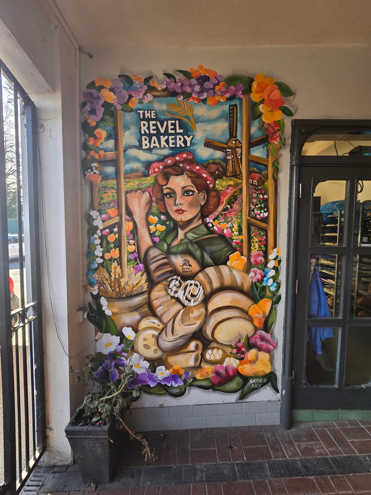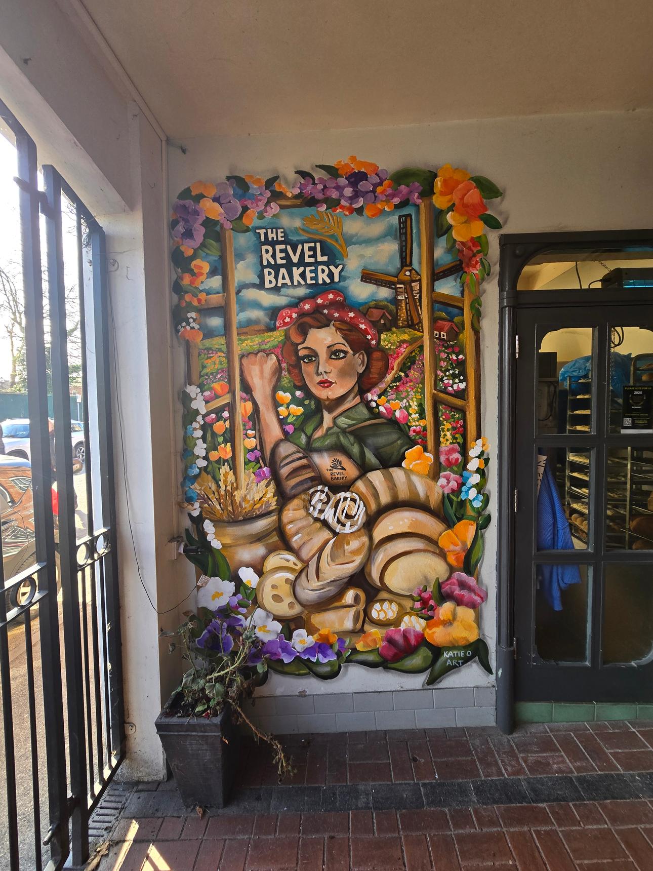 Just inside gate to small shopping arcade. This will be visible from pavement, even when gates are closed