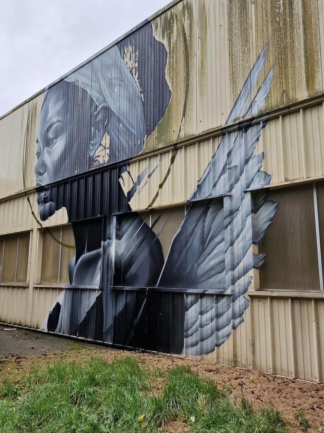 Not the best picture because of a big vehicle in front of the artwork