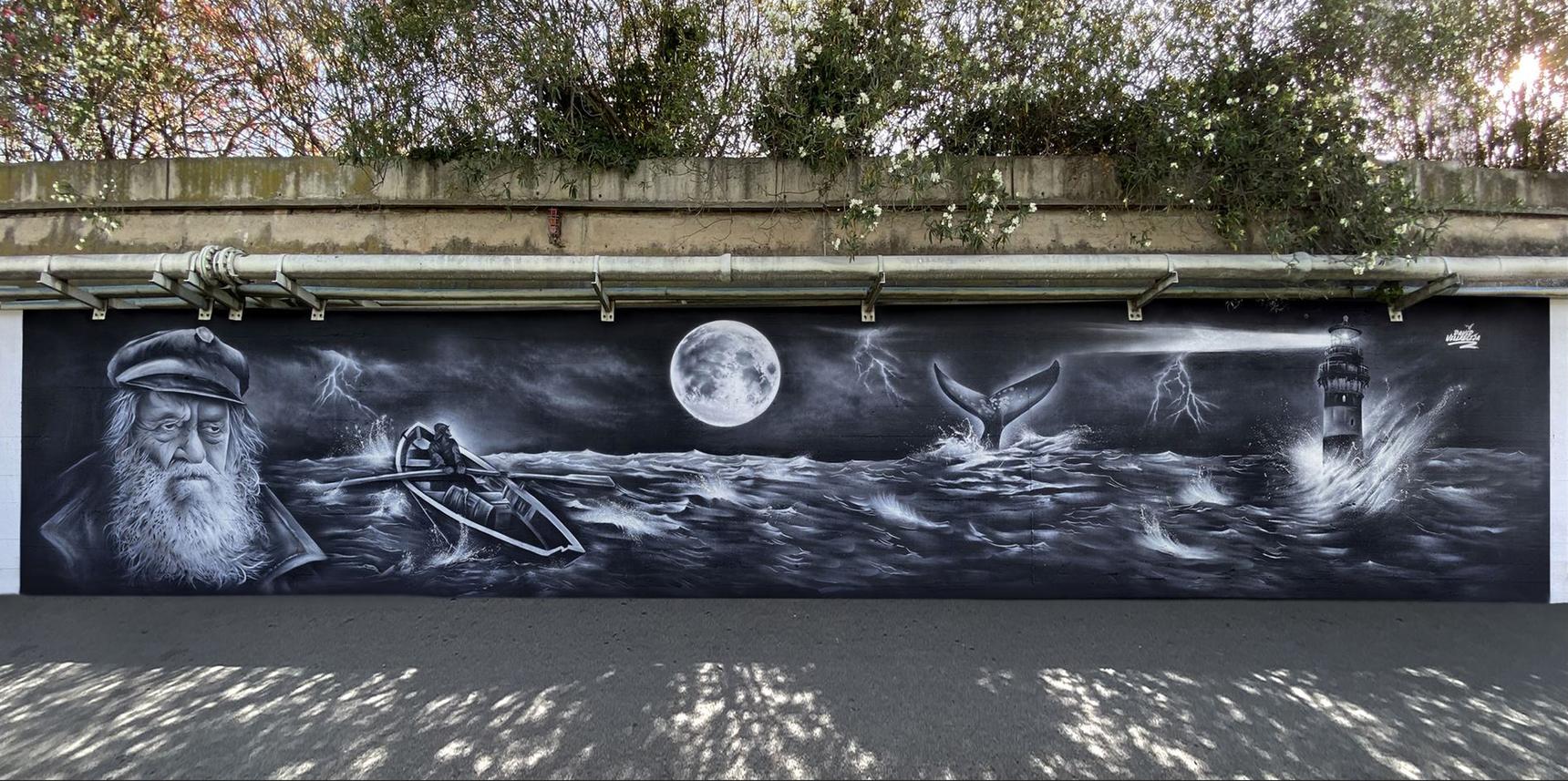 This time, the idea was to move away from a static image and create a mural that tells a story, a narrative.