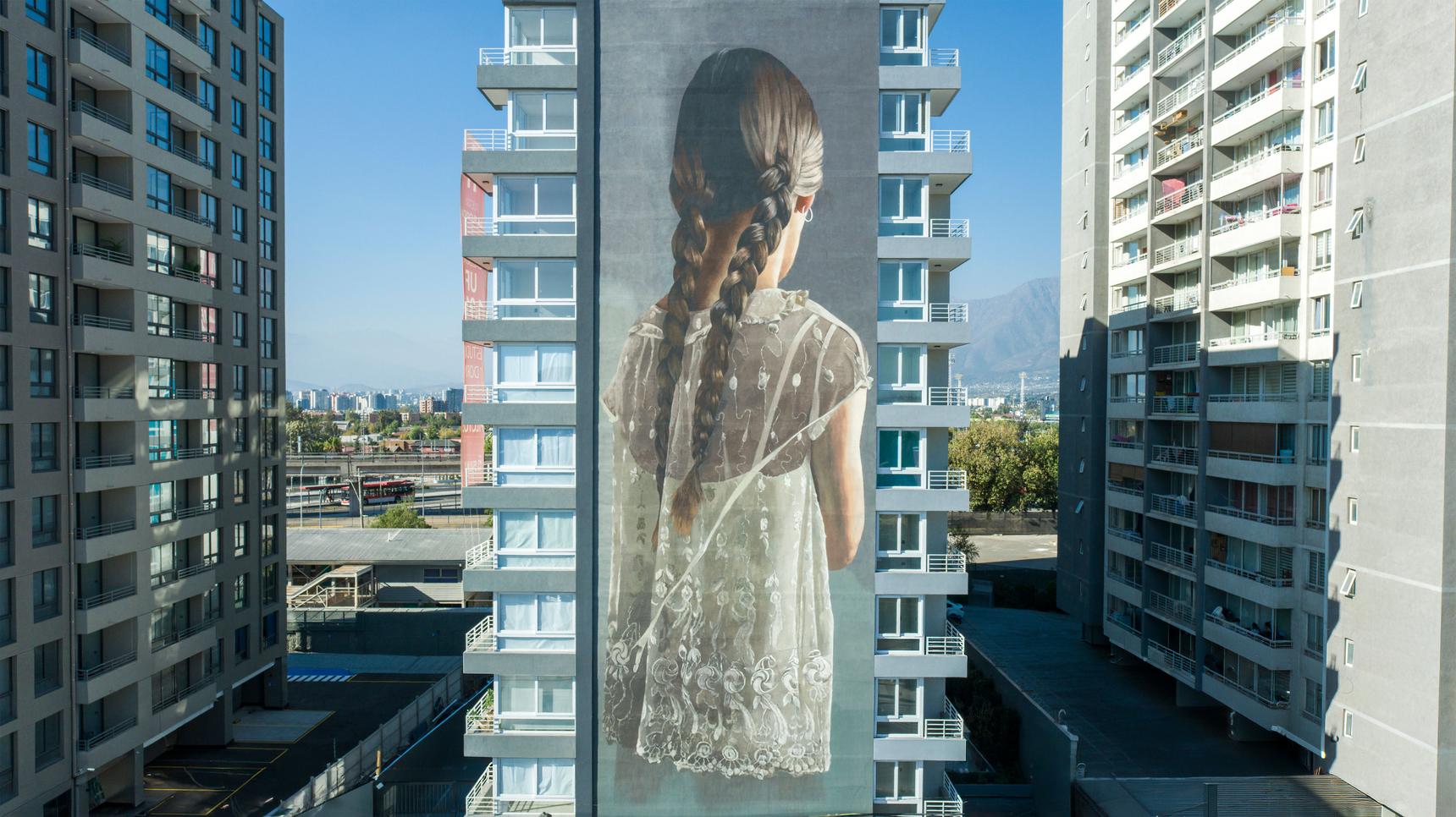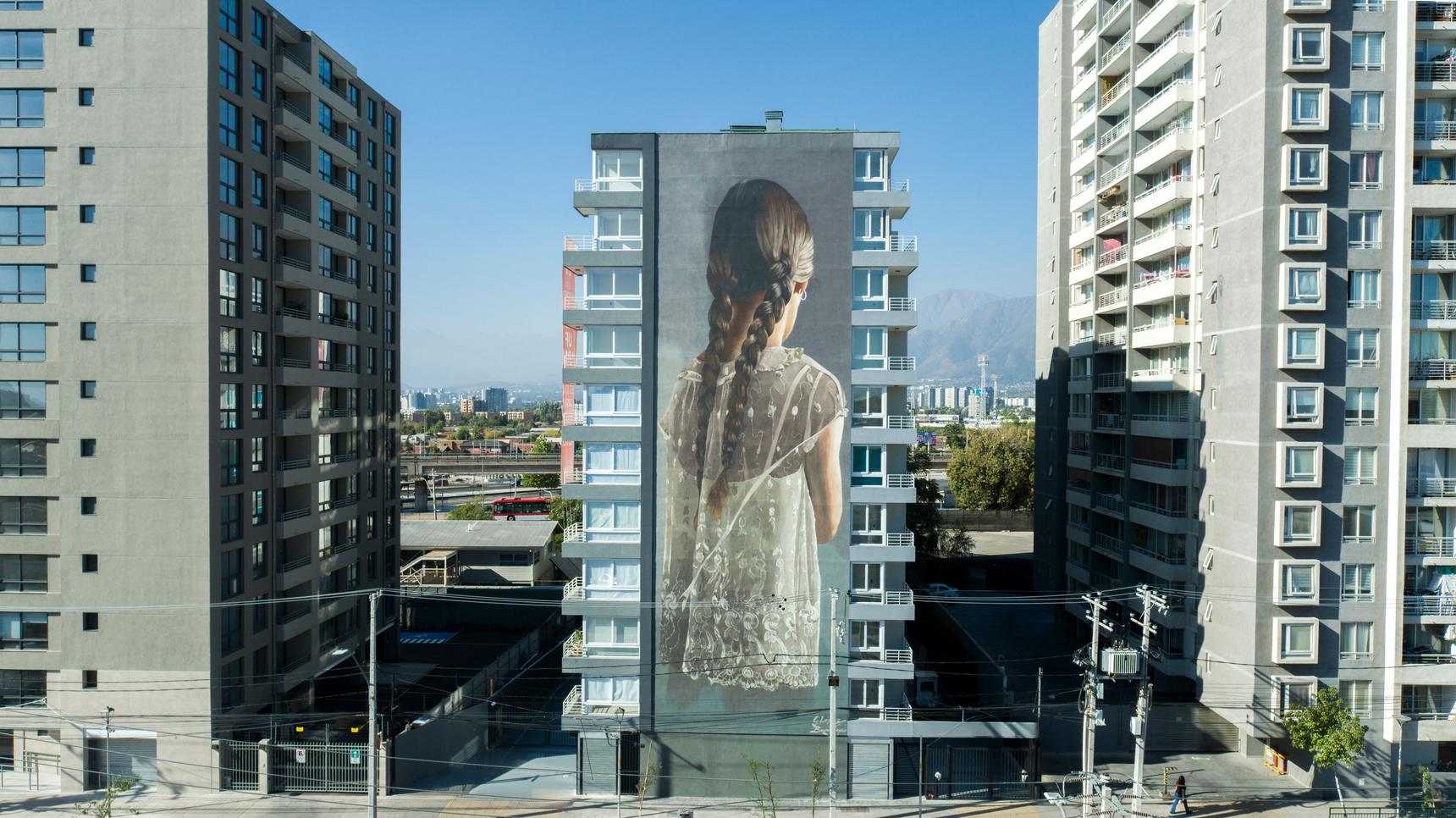 Javier Barriga’s monumental mural Florida, rising across eleven stories in Santiago’s La Florida district, is a study in intimacy at an urban scale. Known for his ability to transform simplicity into a powerful visual language, Barriga paints women from behind—figures without faces, suspended in a moment of quiet inwardness. In Florida, this anonymity becomes an open door. By withholding identity, the mural invites viewers to project their own memories and emotional landscapes, allowing the work to become both universal and deeply personal.