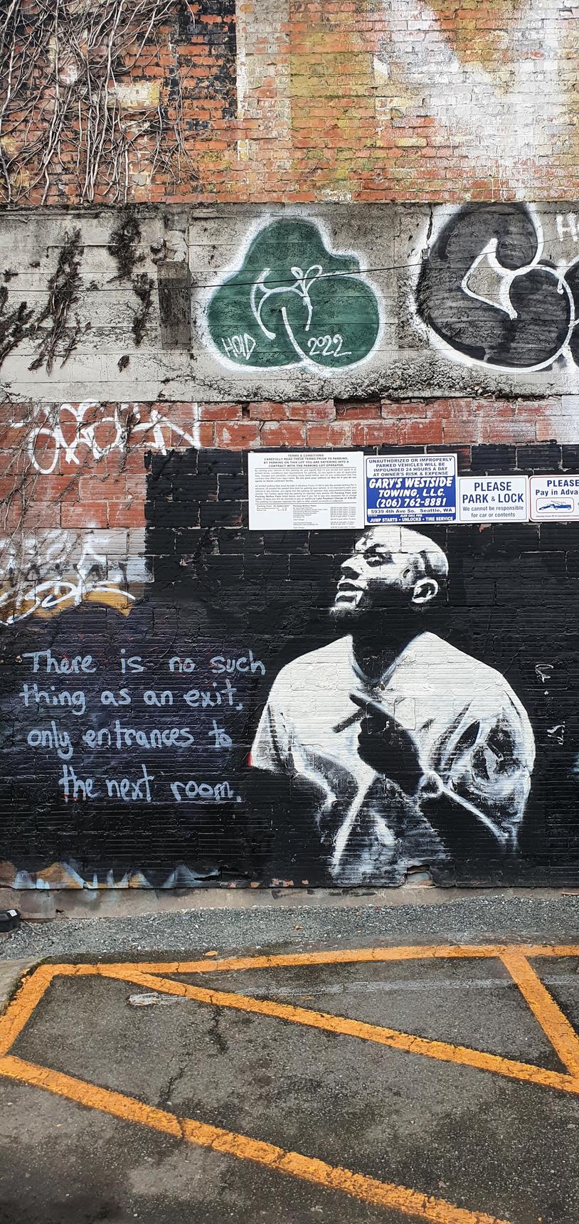 2 photos taken. The one with the quote was on Apr 8 2023. The one without the quote and with graffiti was on July 18 2025.