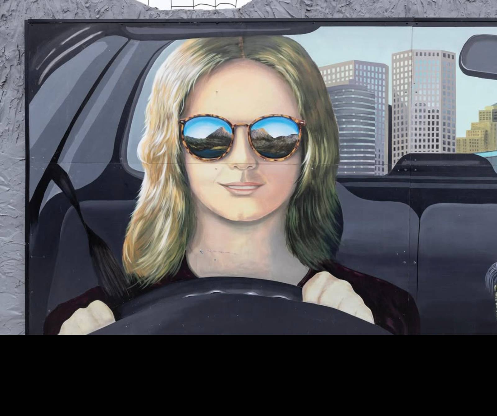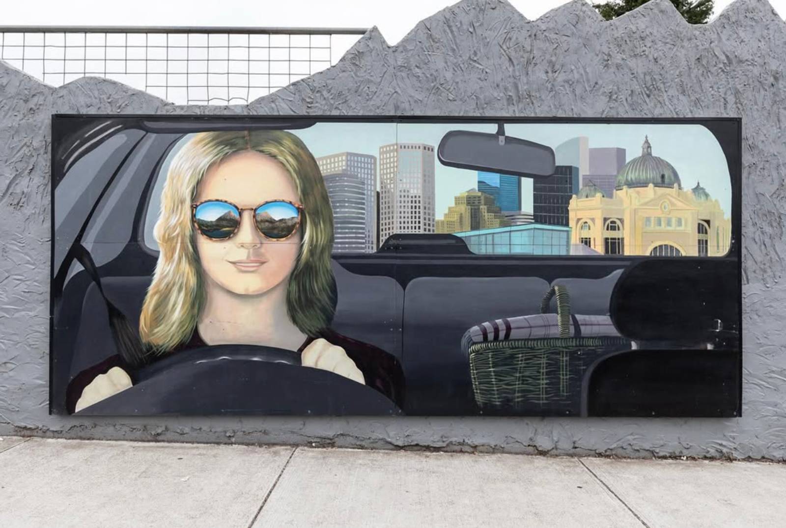 This driving lady with the sunglasses can be found near the Skate Park in Sheffield … next to the toilet block in carpark.