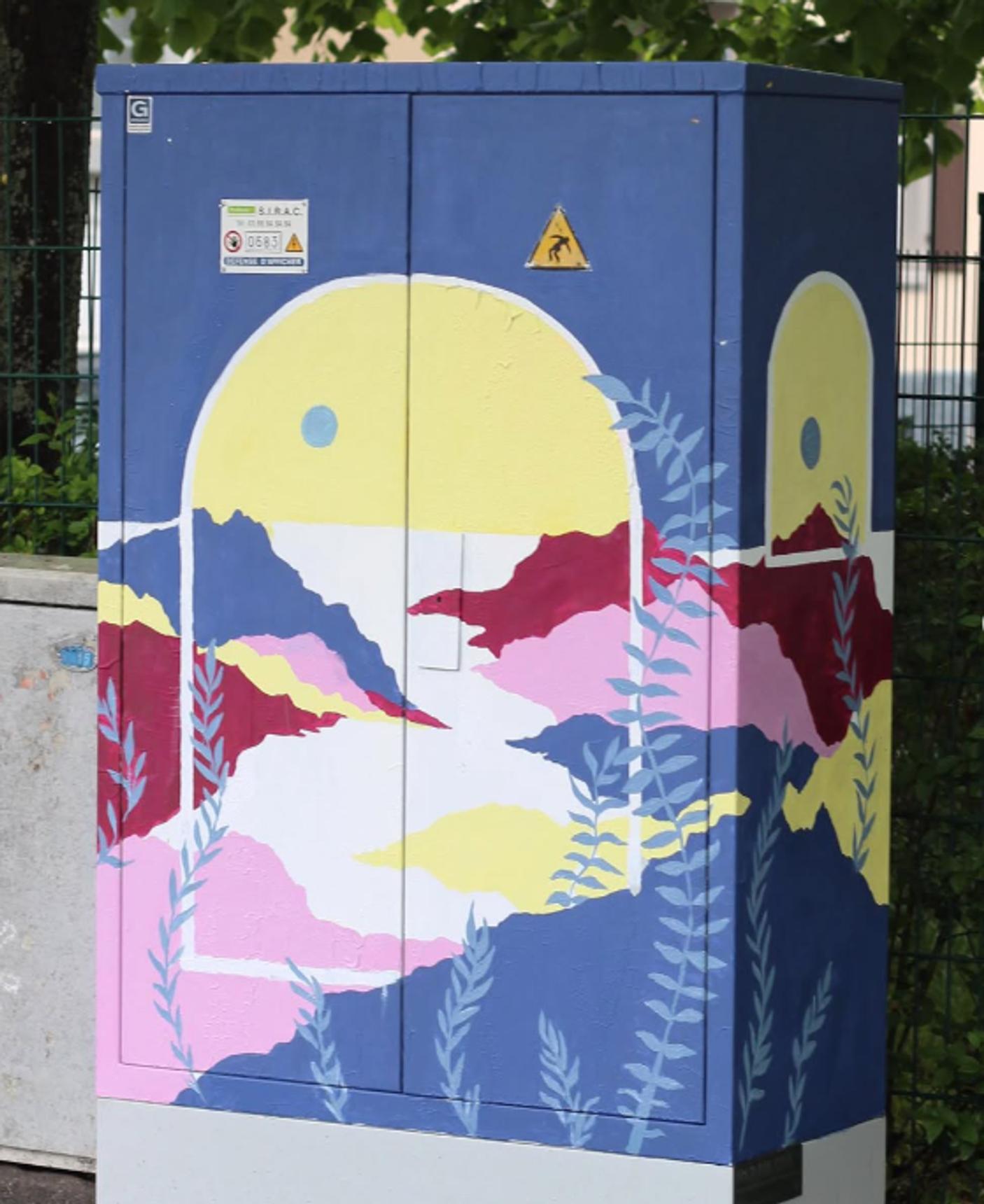 You can find this decorated electrical box, along with many others, throughout the Neudorf district in Strasbourg. Enjoy your walk.