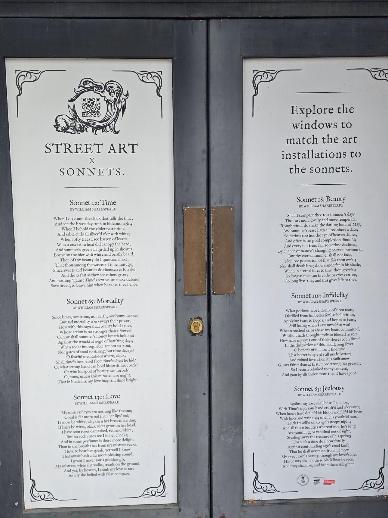 Street Art X Sonnets is the creation of Shakespeare's England, where renowned street artists and illustrators have been invited to create a window display based on one of Shakespeare's sonnets.