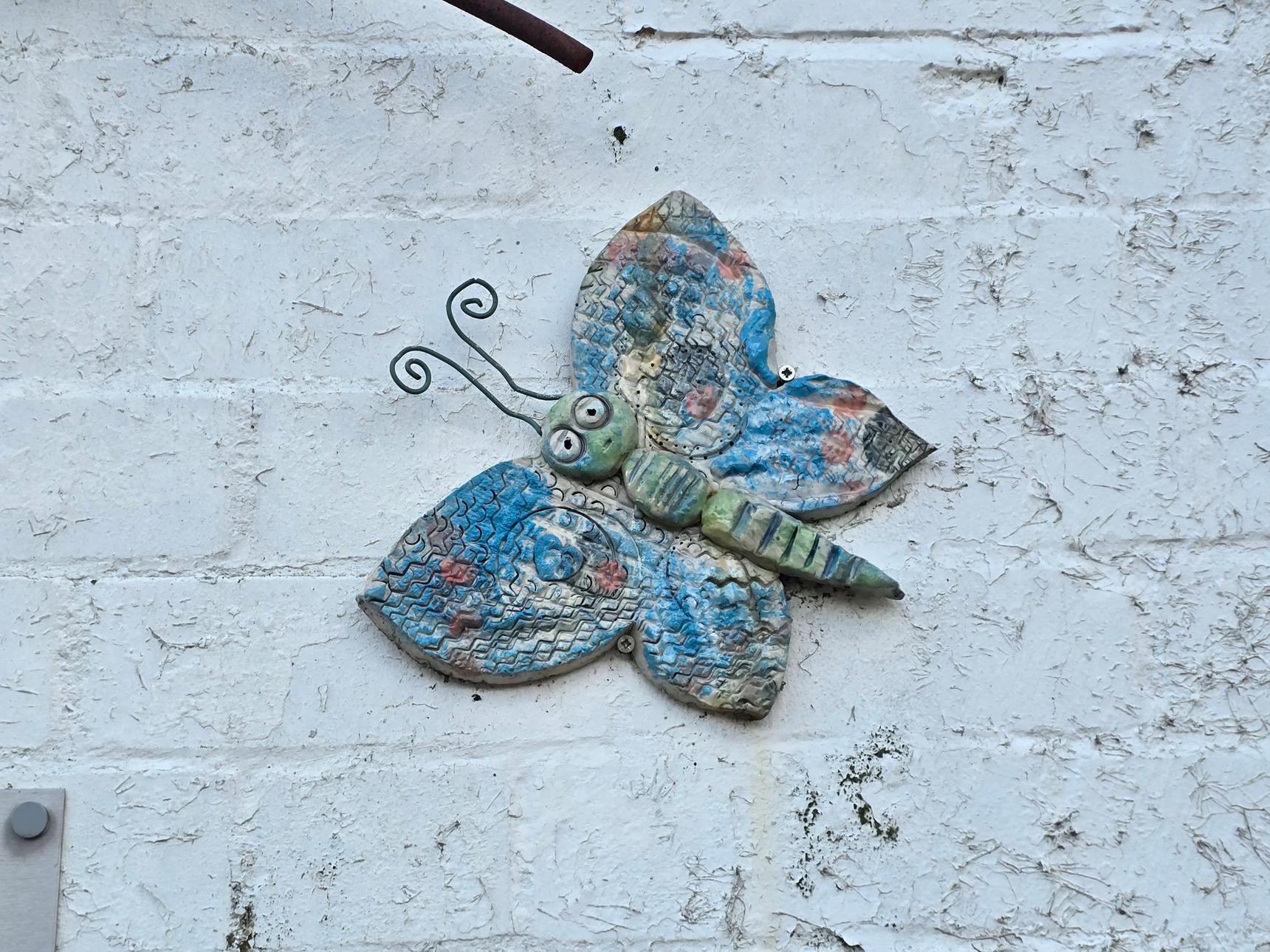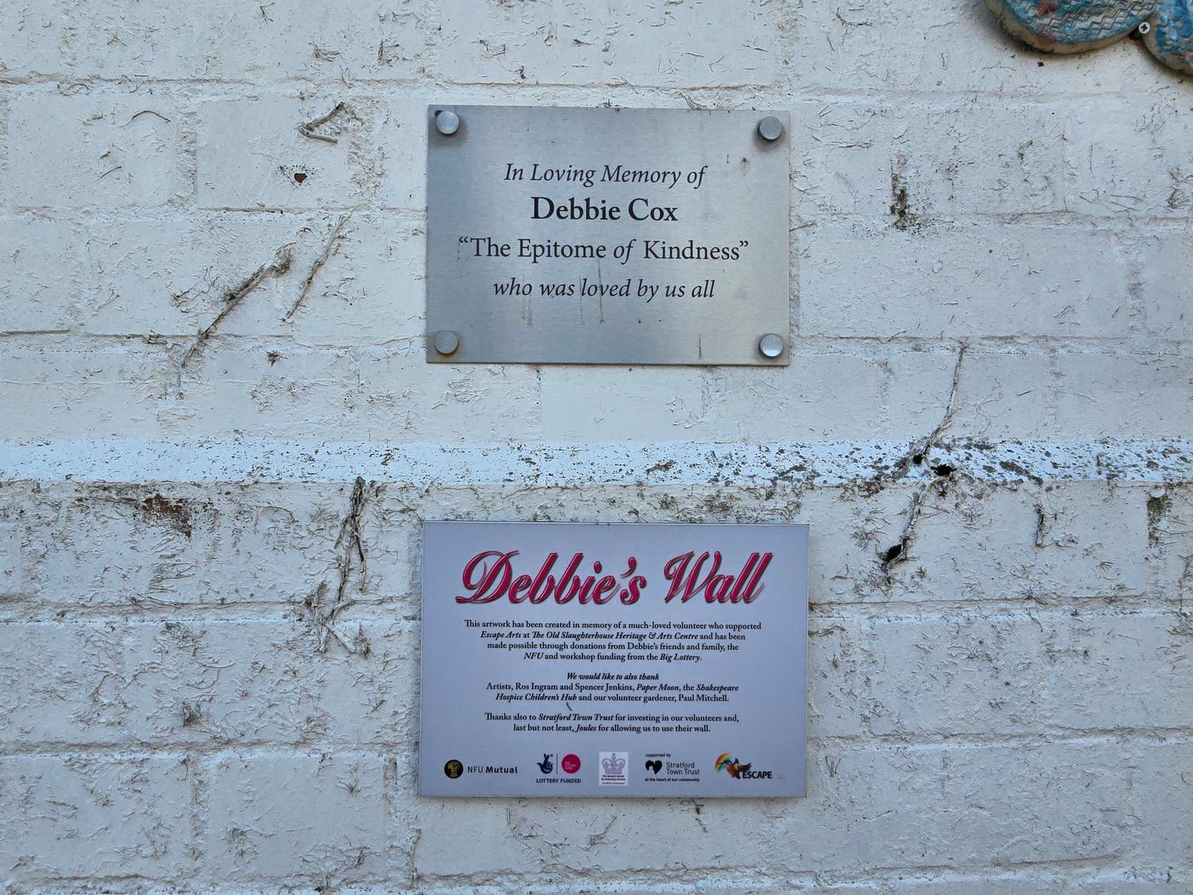 This artwork was created by artists Ros Ingram and Spencer Jenkins in memory of Escape Arts volunteer Debbie Cox.