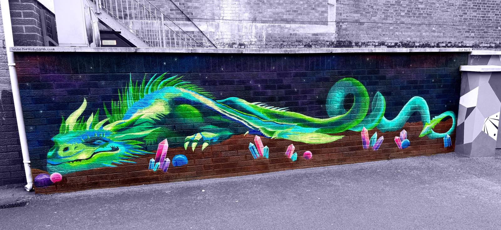 Dare you risk waking the sleeping Wyvern in pursuit if it’s riches? Vibrancy abounds in this magical piece painted at the Swindon Paint Fest 2025.