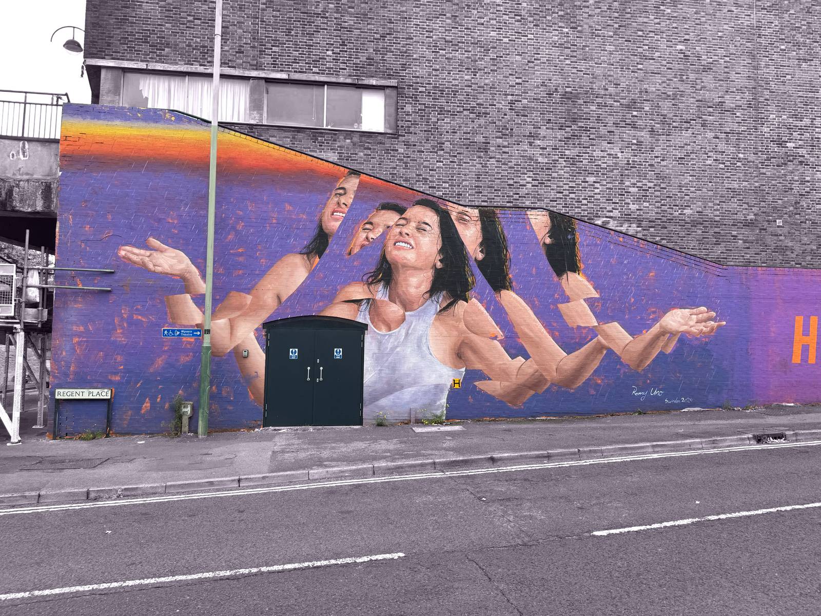 A joyful beauty of a piece on the wyvern theatre painted as part of the Swindon Paint Fest in 2024.
