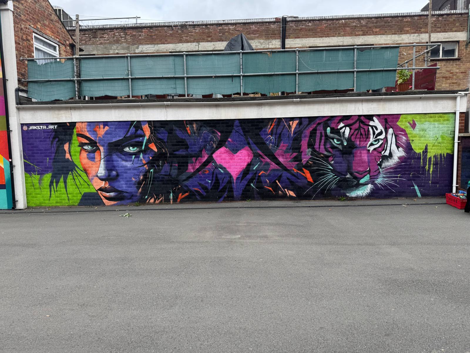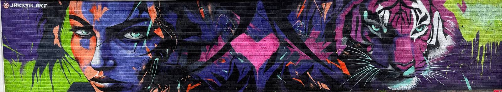Incredible piece from the 2024 Swindon Paint Fest with artist Jaksta sticking to his neon vibe.