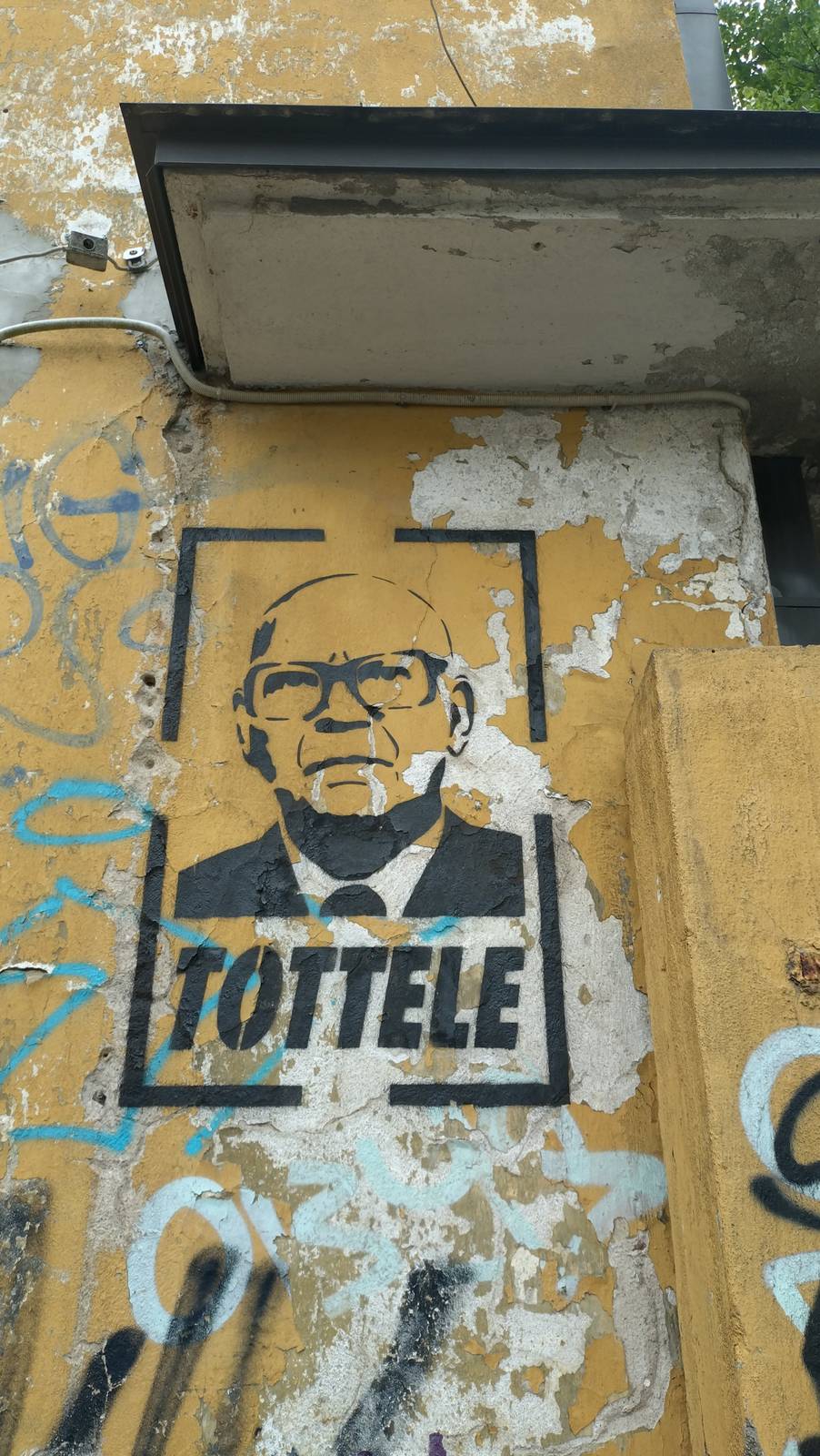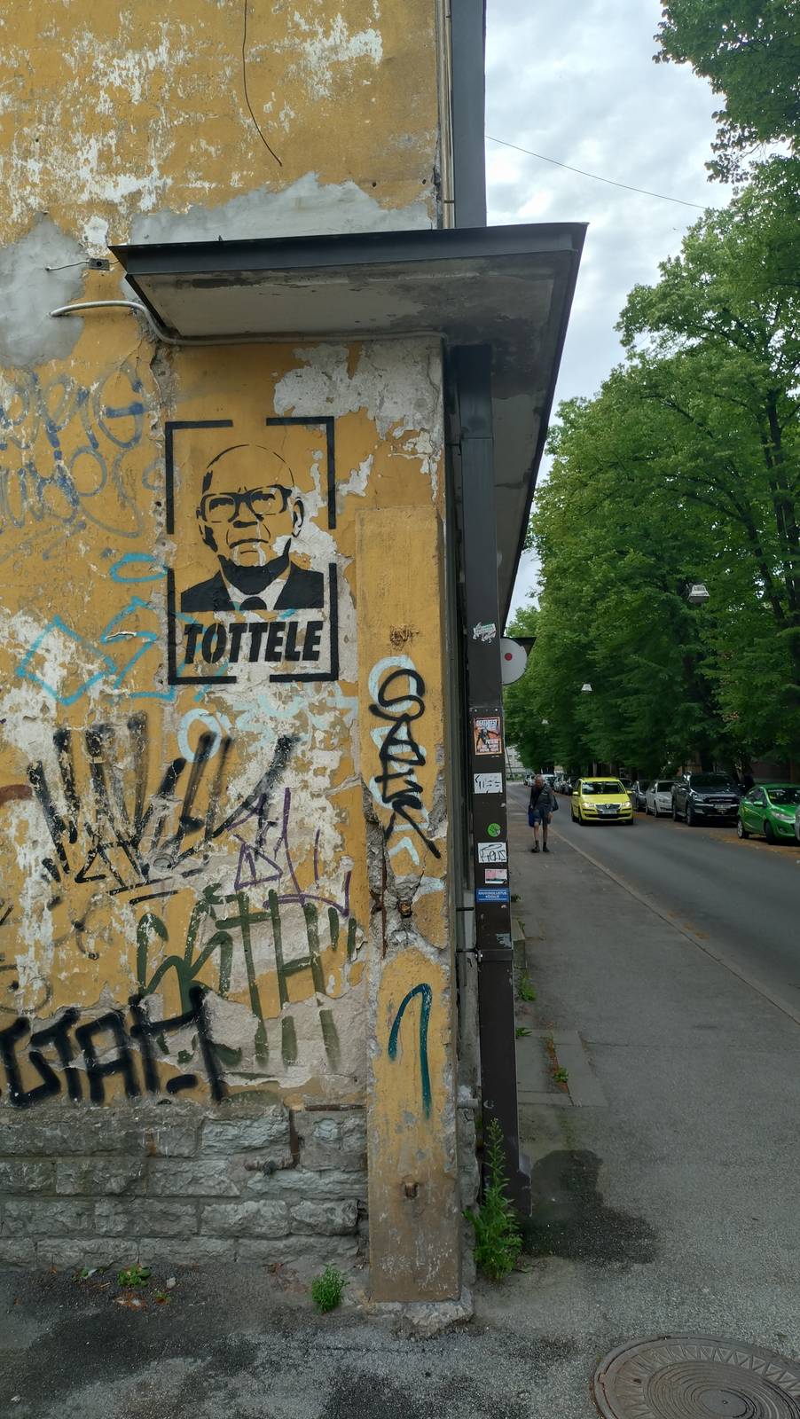 The artwork "Tottele" by street artist Plan B takes inspiration from Shepard Fairey’s iconic "Obey" art and adapts it to a Finnish context by featuring the almost mythological figure of Urho Kekkonen, who served as Finland's president from 1956 to 1982. "Tottele" means "Obey" in Finnish.