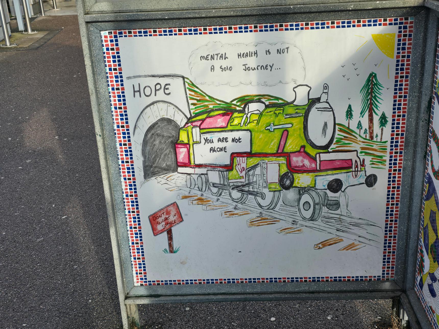 This piece was created by service users at George Bryan Centre in Tamworth, in partnership with Arts for Health, Tamworth Arts and Events, and Tamworth Station Partnerships.