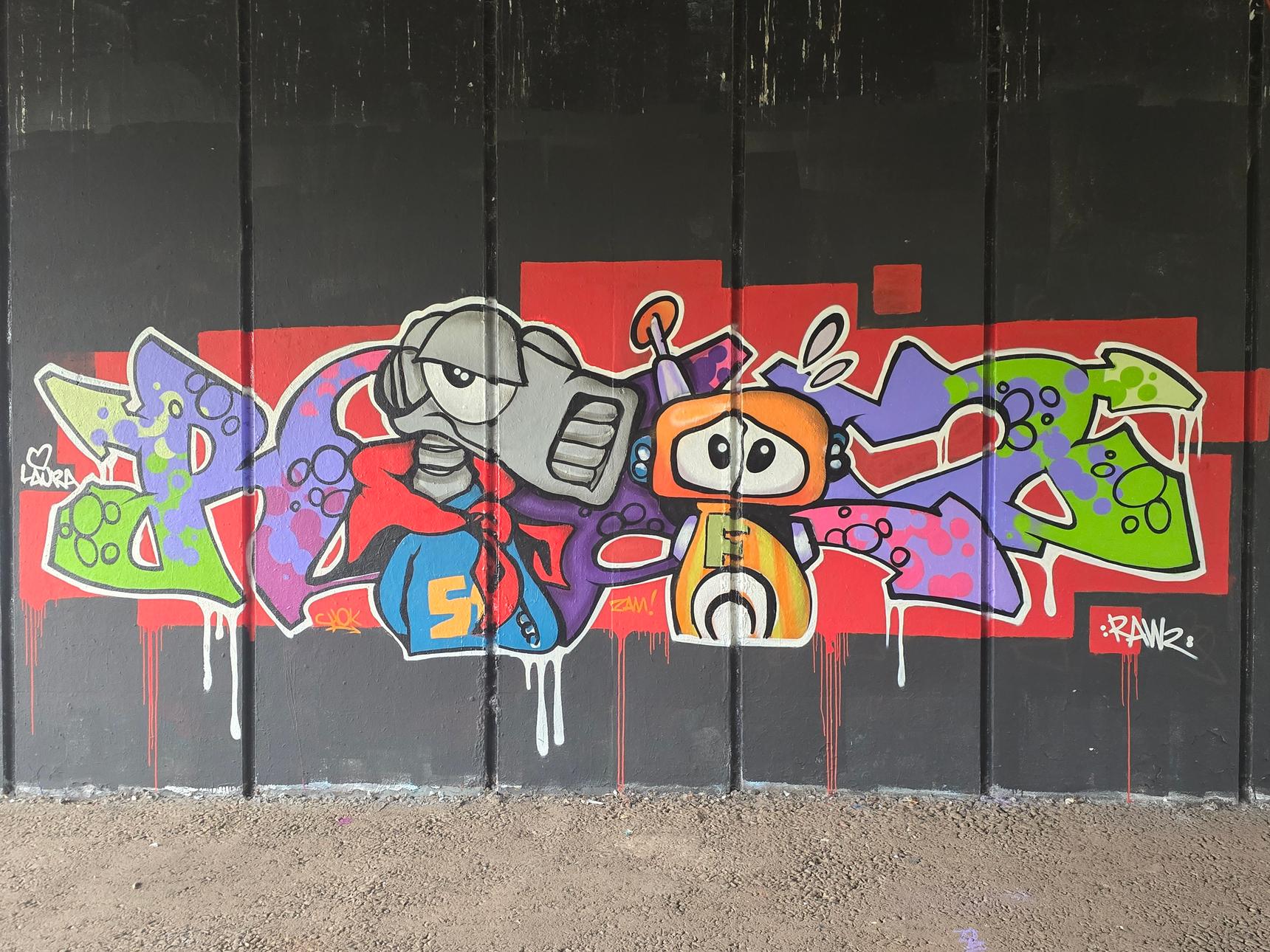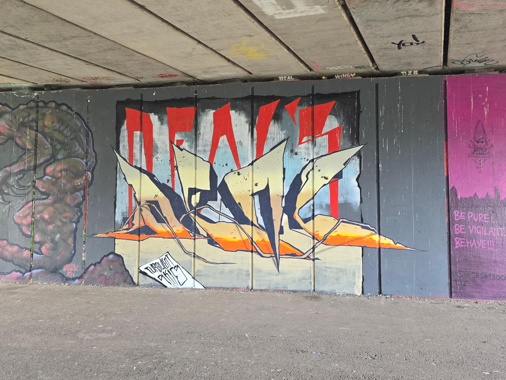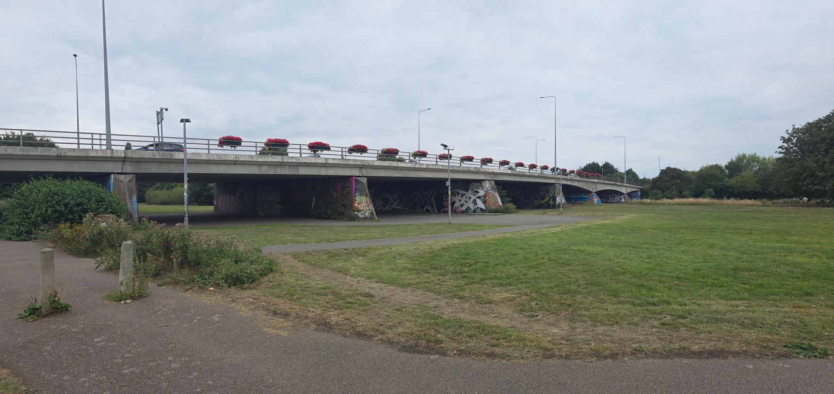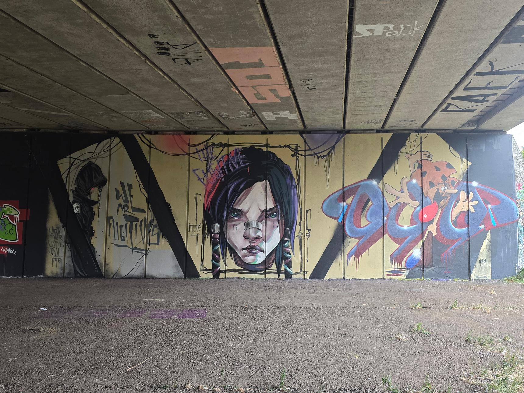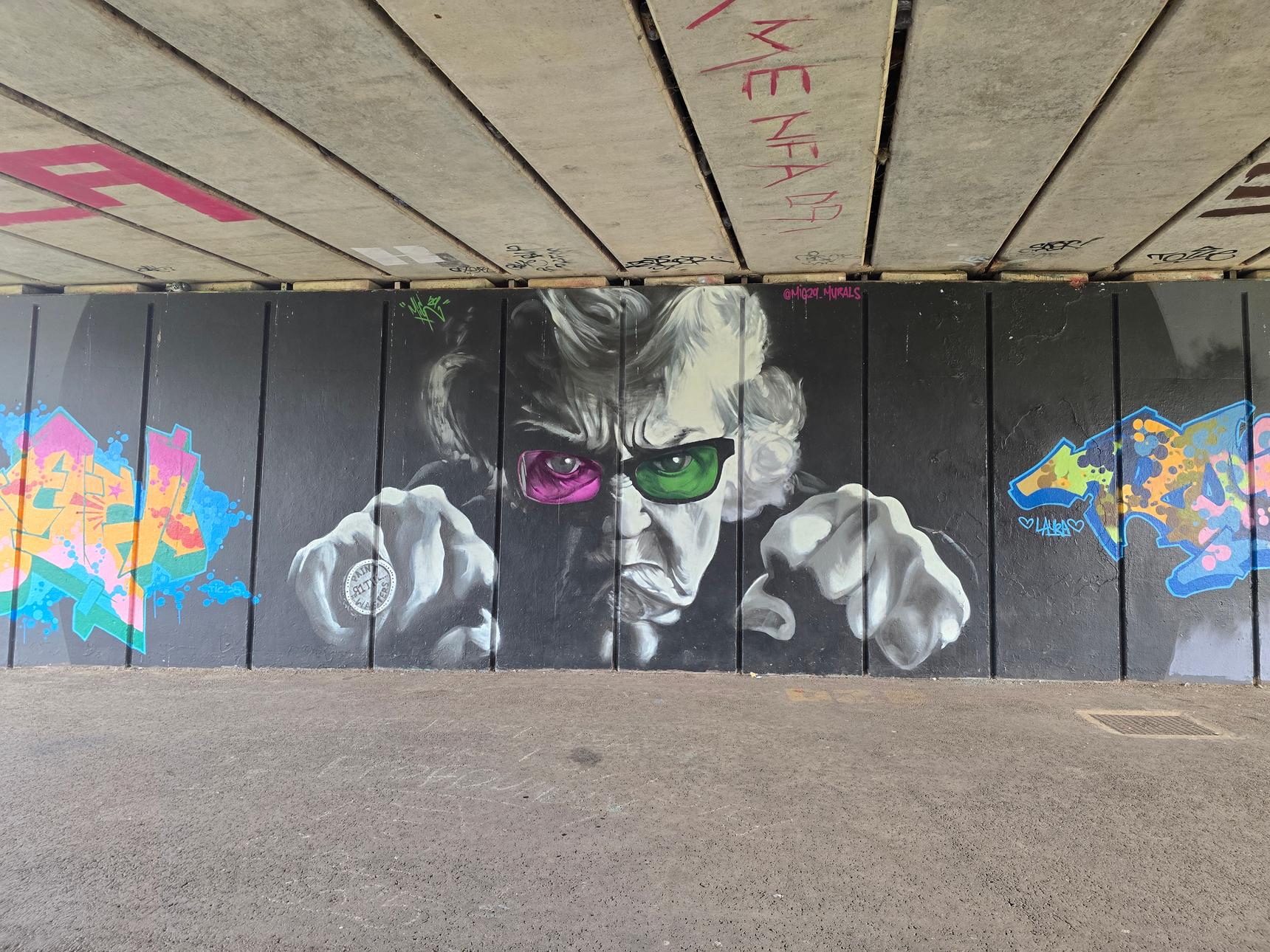 Located underneath Riverdrive (A51), this is a fantastic site for murals and street art. Parking is available nearby at the Snowdome and Namco. It is also a short walk from Tamworth Castle Grounds.
