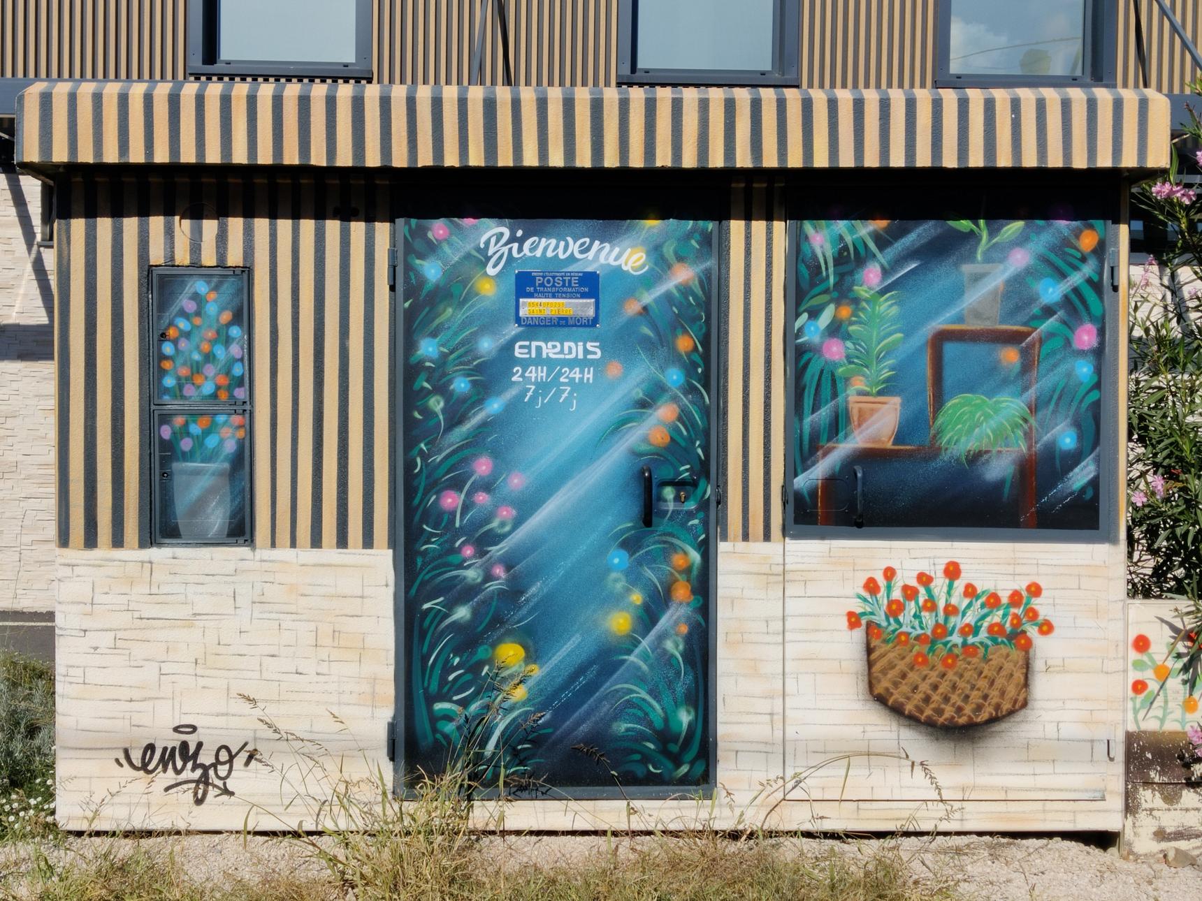 A representation of a flower shop on an electrical transformer in TARBES (65), France