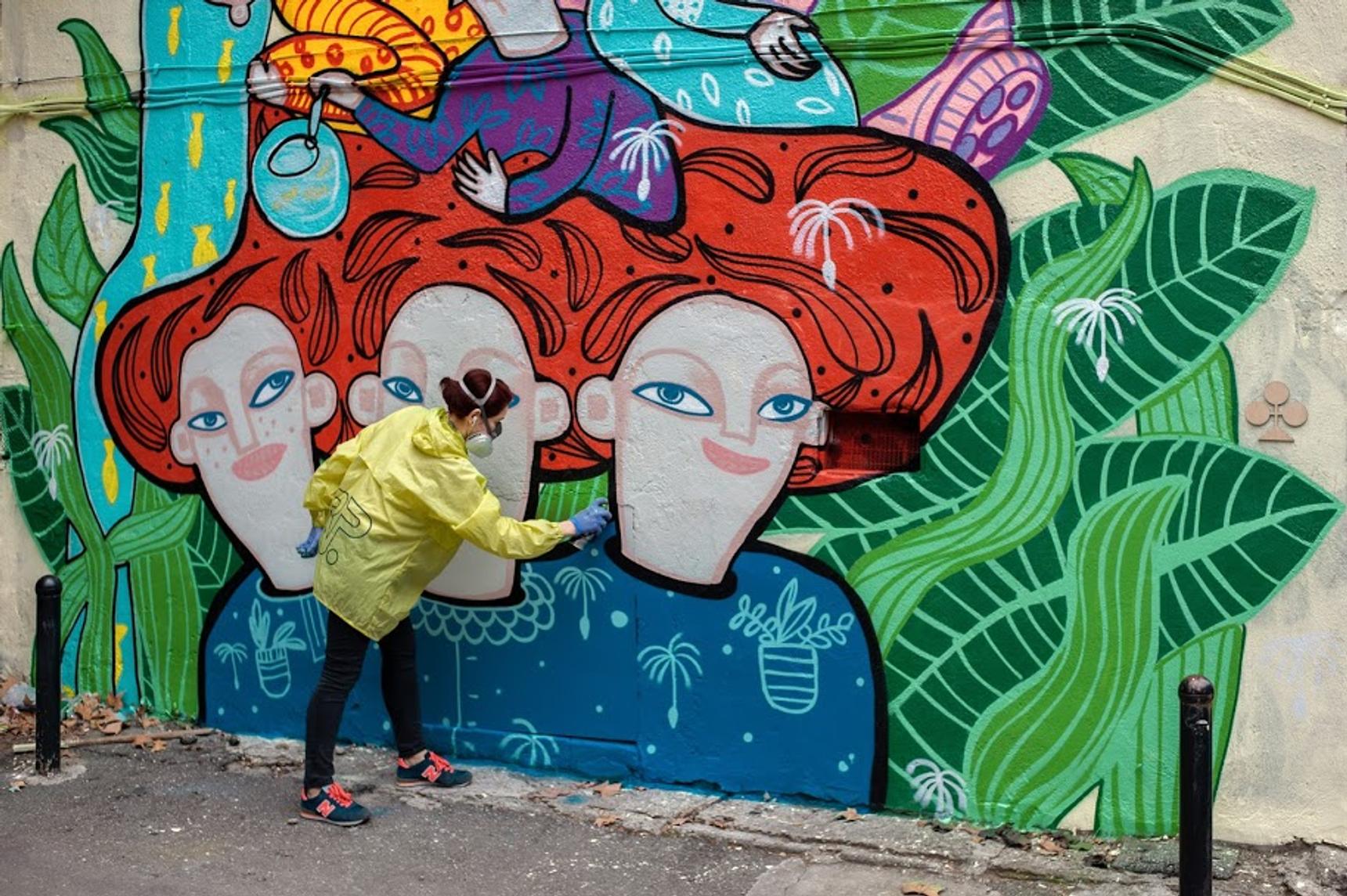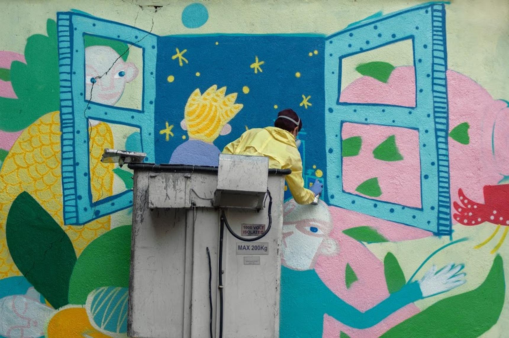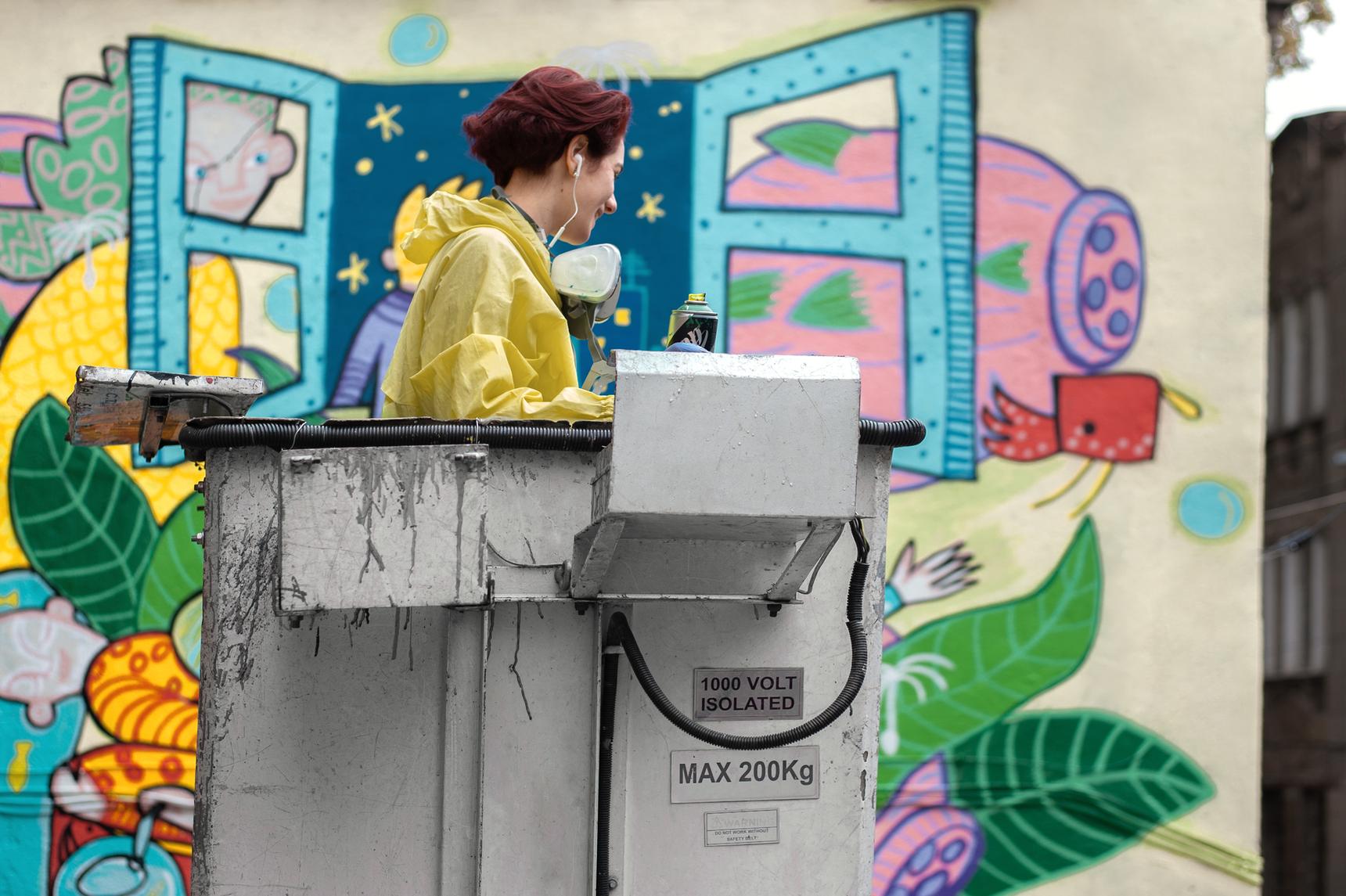 This colorful mural was the first project with Niko Movement in Tbilisi, Georgia. It was also the first big wall of Masholand (Masho Marg) in the city's exterior.