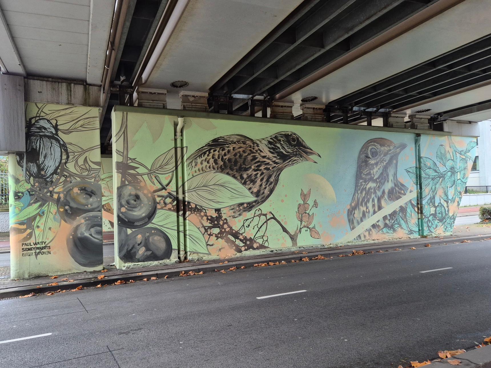 Met 4 vogels, 3 zeer getalenteerde kunstenaars en in totaal 8 muren, allemaal geïnspireerd door het ritme en het leven van het nabijgelegen Spoorpark.
