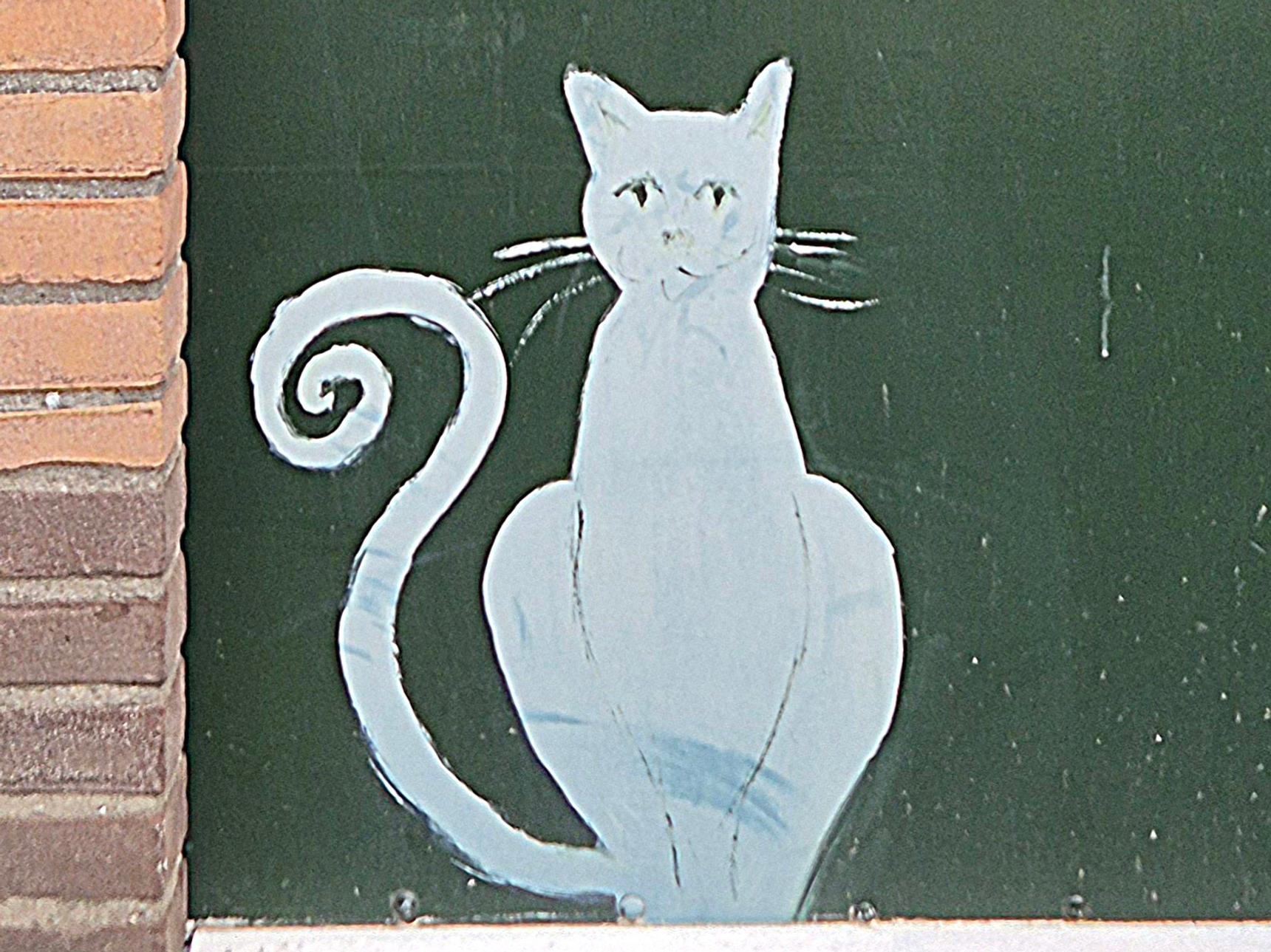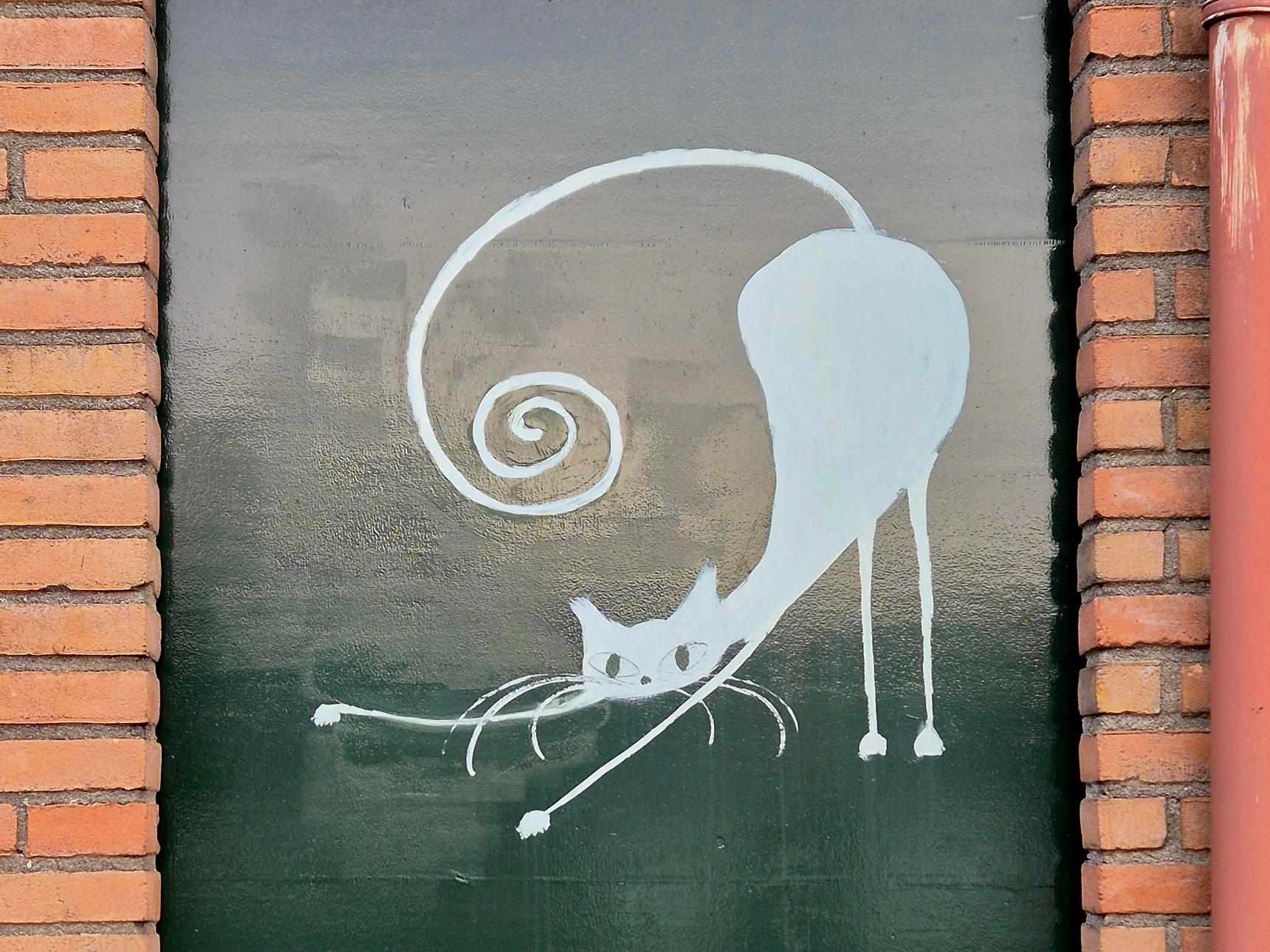 Tanja told me that the woodwork on her mother-in-law's house could use a coat of paint. After talking it over with her, Tanja decided to paint two cats on the storage room door.