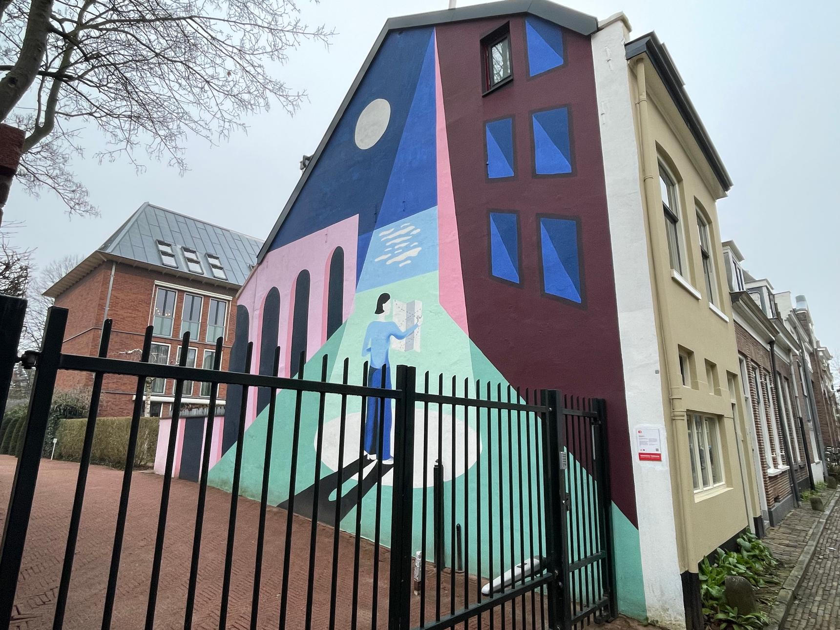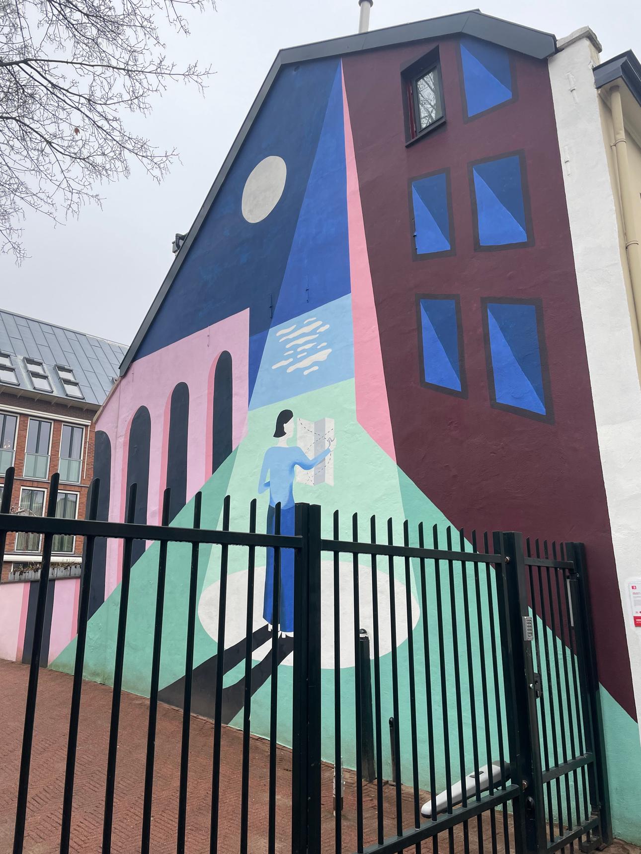 This artwork is an ode to the night. A magical, realistic image of empty streets and squares. Like during the covid lockdown of 2021. About wandering through a city at night and stumbling upon mystical paths and hidden courtyards. And how we always find our way back to better times. The mural is part of the project 'City Canvas', which celebrated 900 years of city rights in Utrecht.
