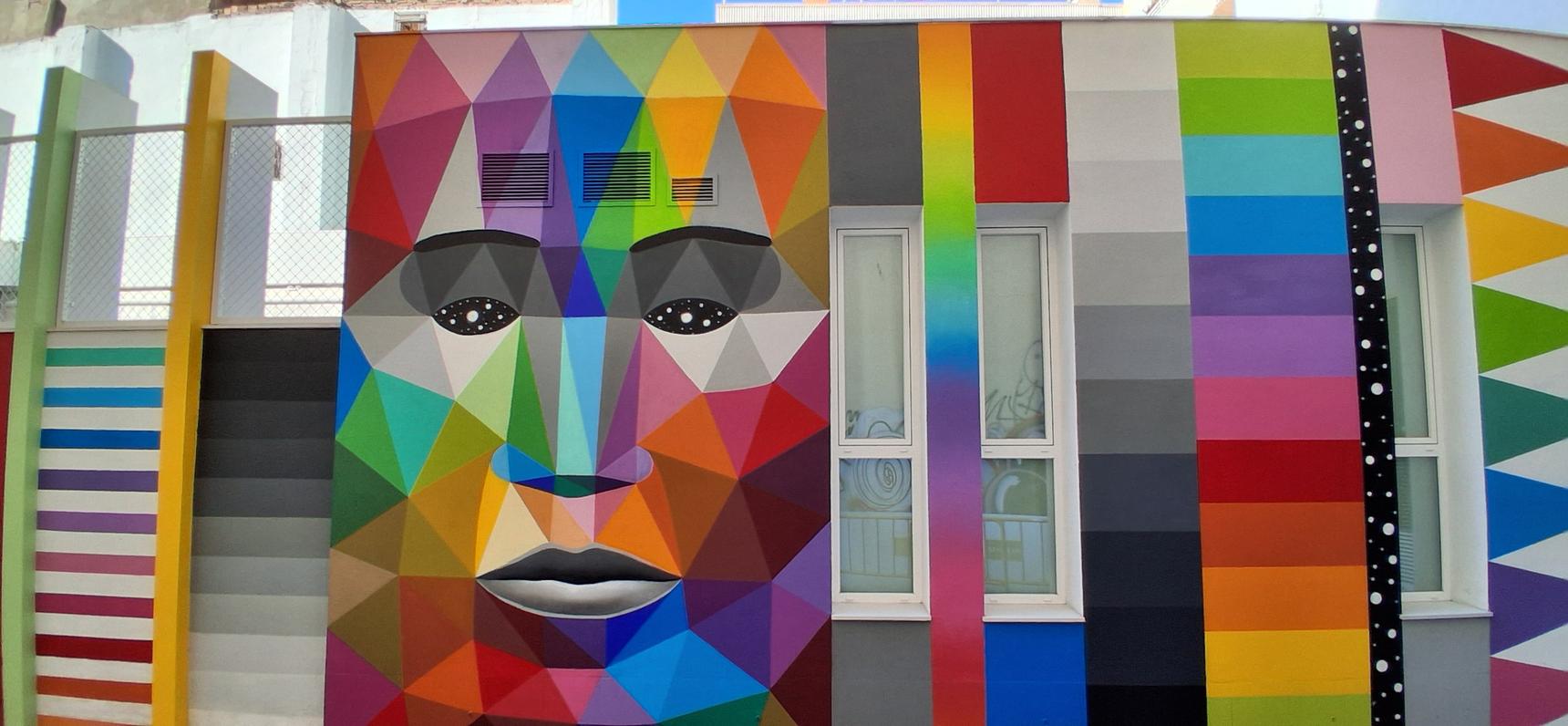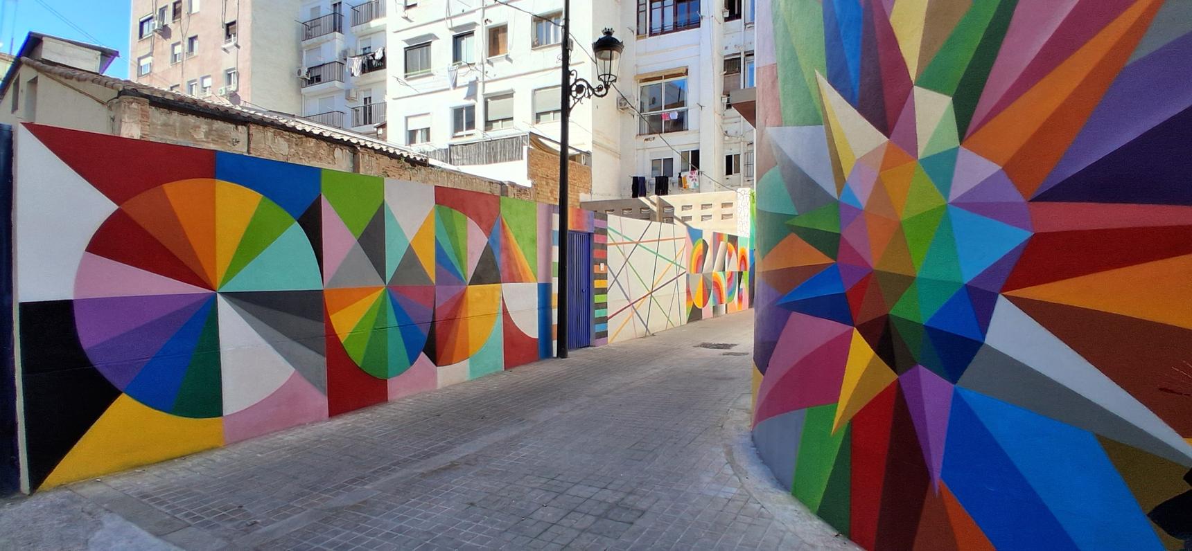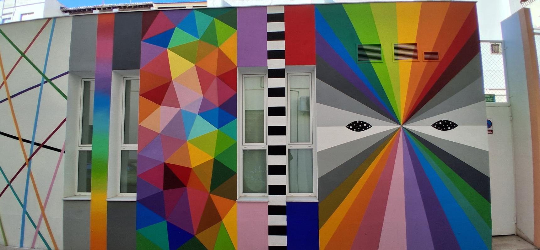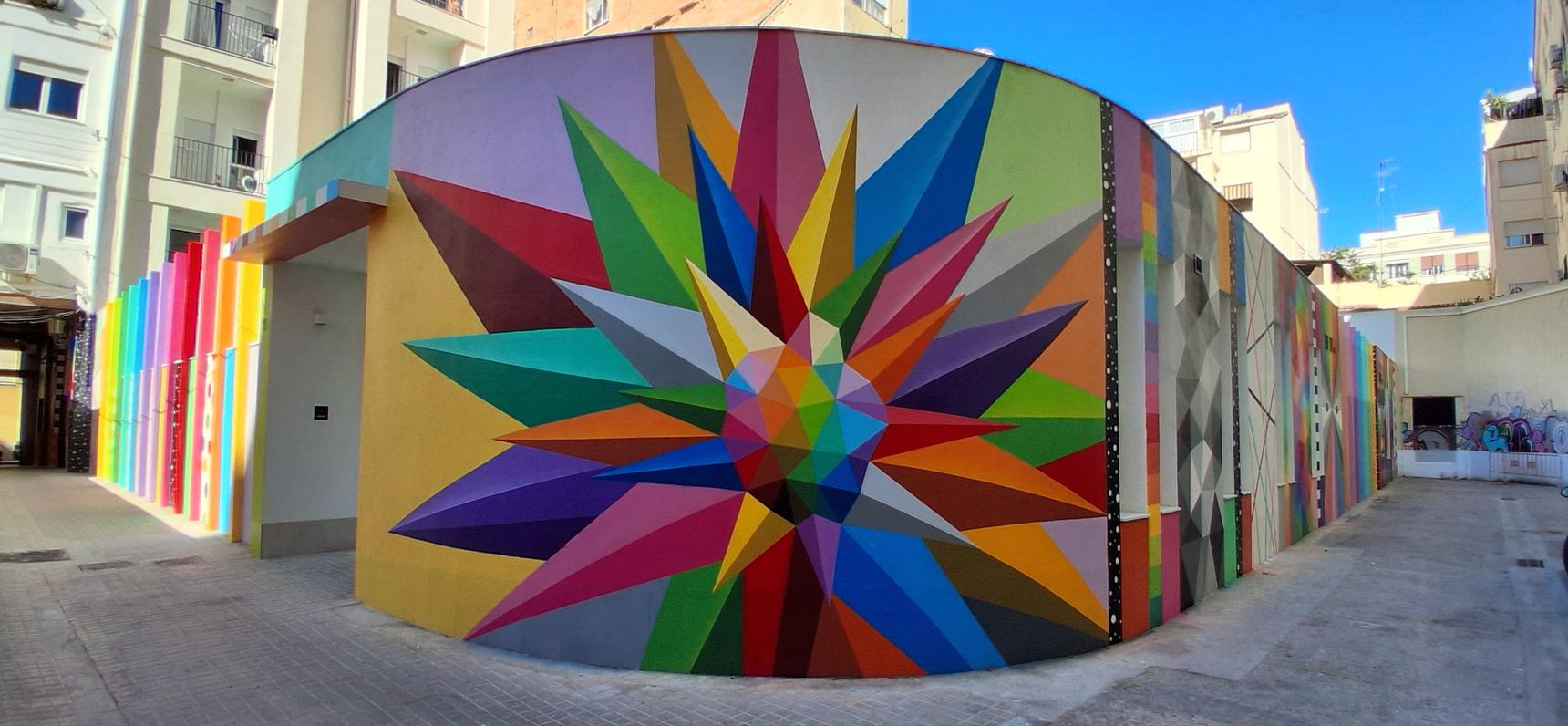 The artist Okuda San Miguel has created a new large-scale mural in Valencia, entitled "The Corridor of Polylove", located on the façade of the Casa Caridad Nursery School on Calle Chilches. This work stands out for its vibrant colours and geometric shapes, marking a charitable collaboration aimed at improving the surroundings of the nursery school, which was unveiled in March 2026