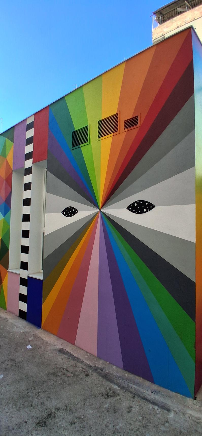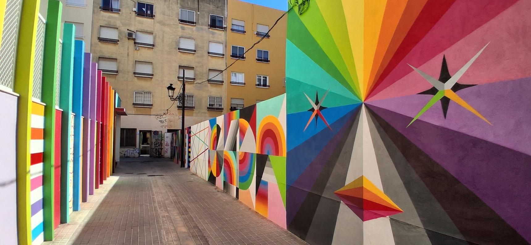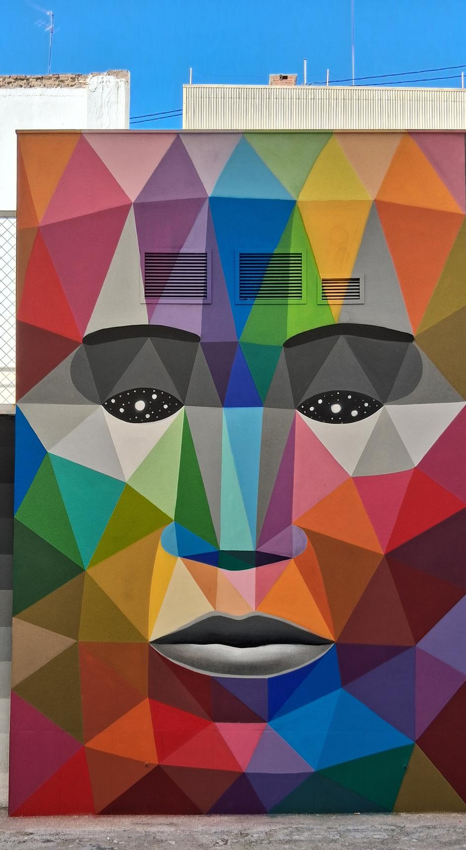The artist Okuda San Miguel has created a new large-scale mural in Valencia, entitled "The Corridor of Polylove", located on the façade of the Casa Caridad Nursery School on Calle Chilches. This work stands out for its vibrant colours and geometric shapes, marking a charitable collaboration aimed at improving the surroundings of the nursery school, which was unveiled in March 2026