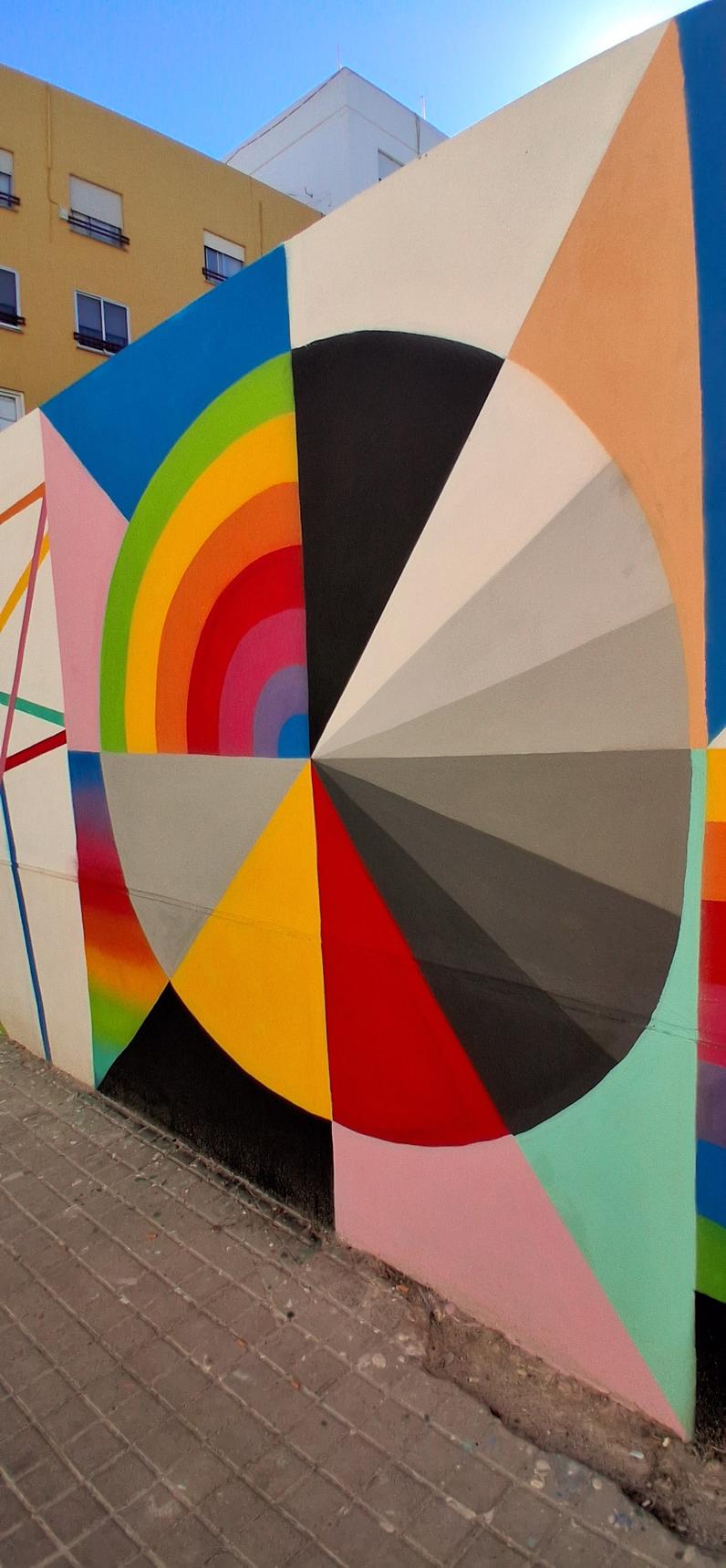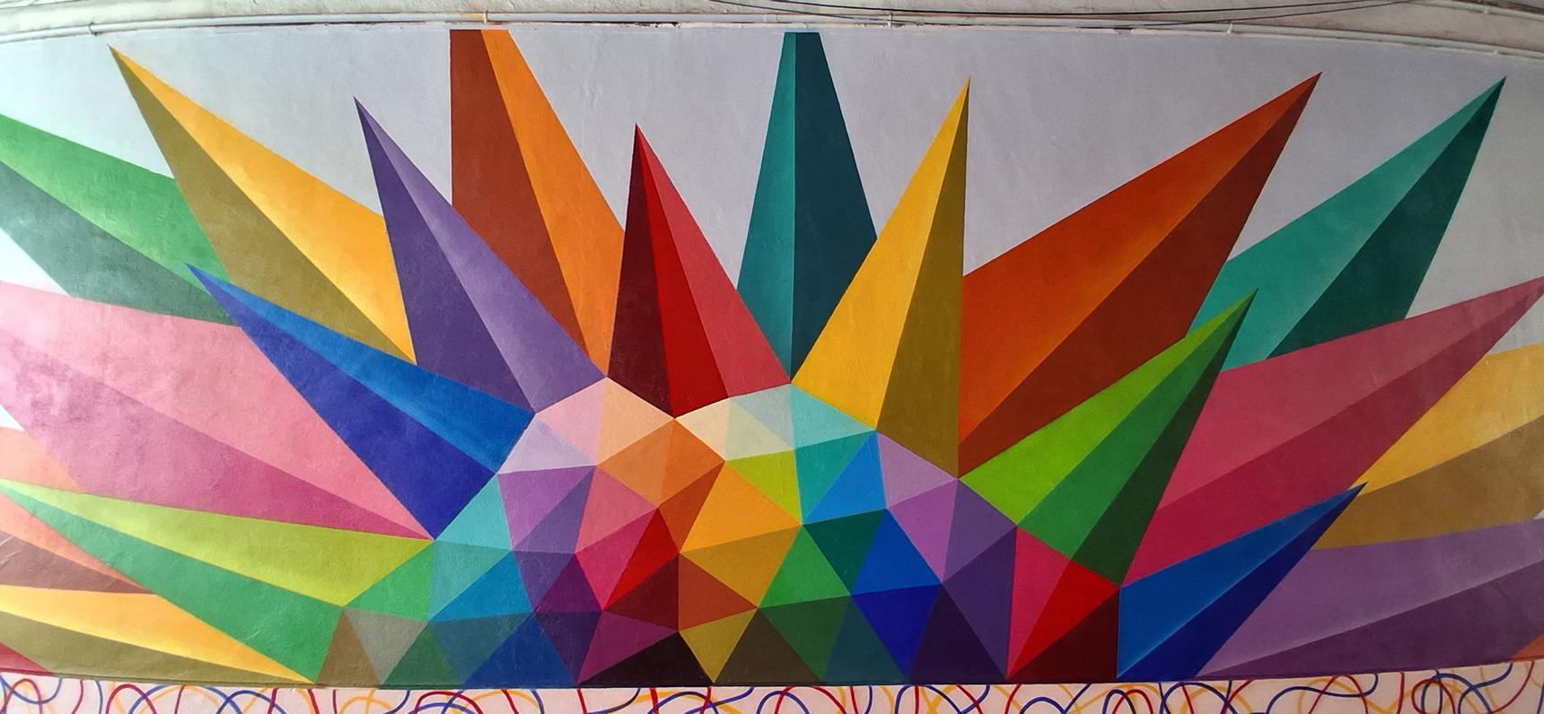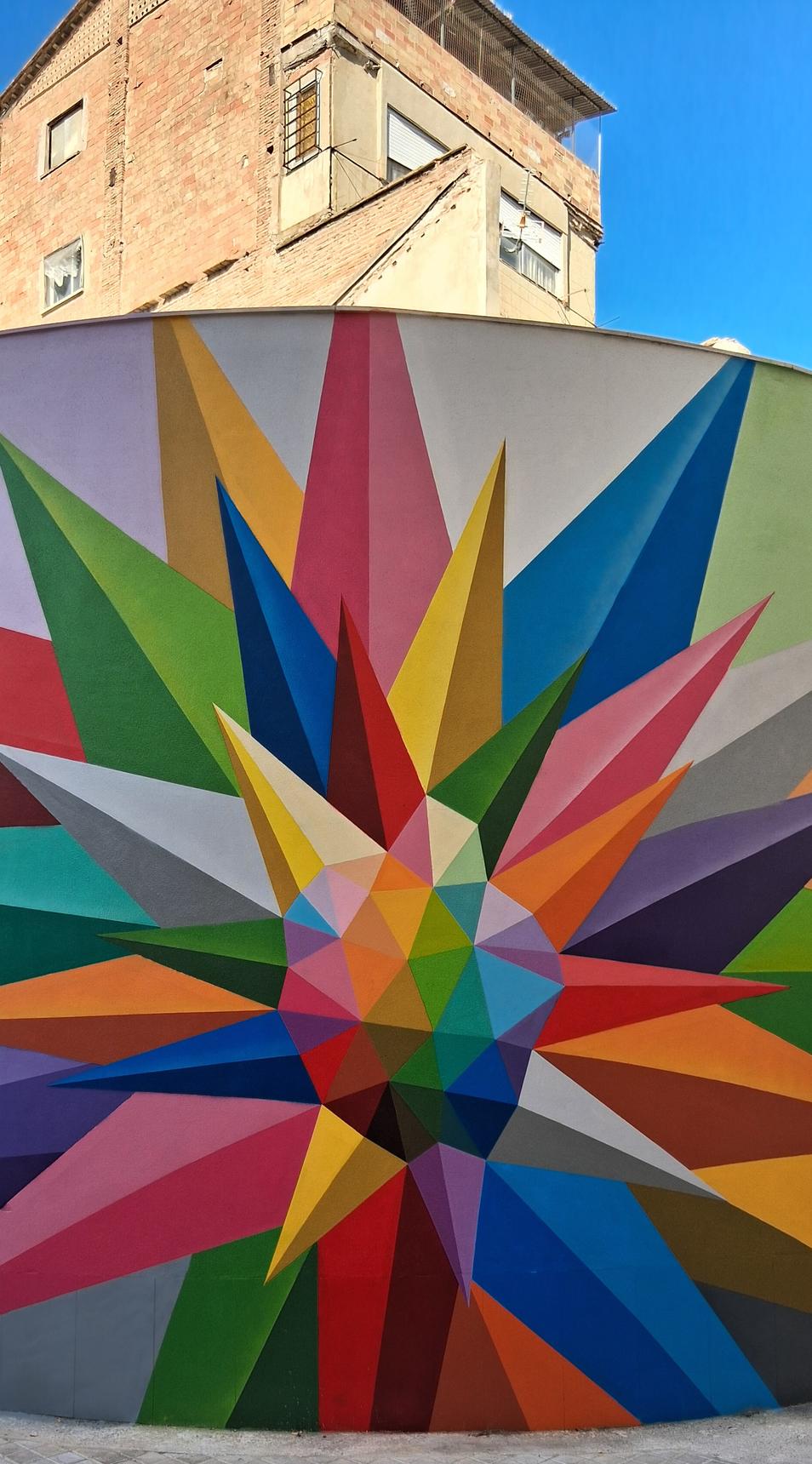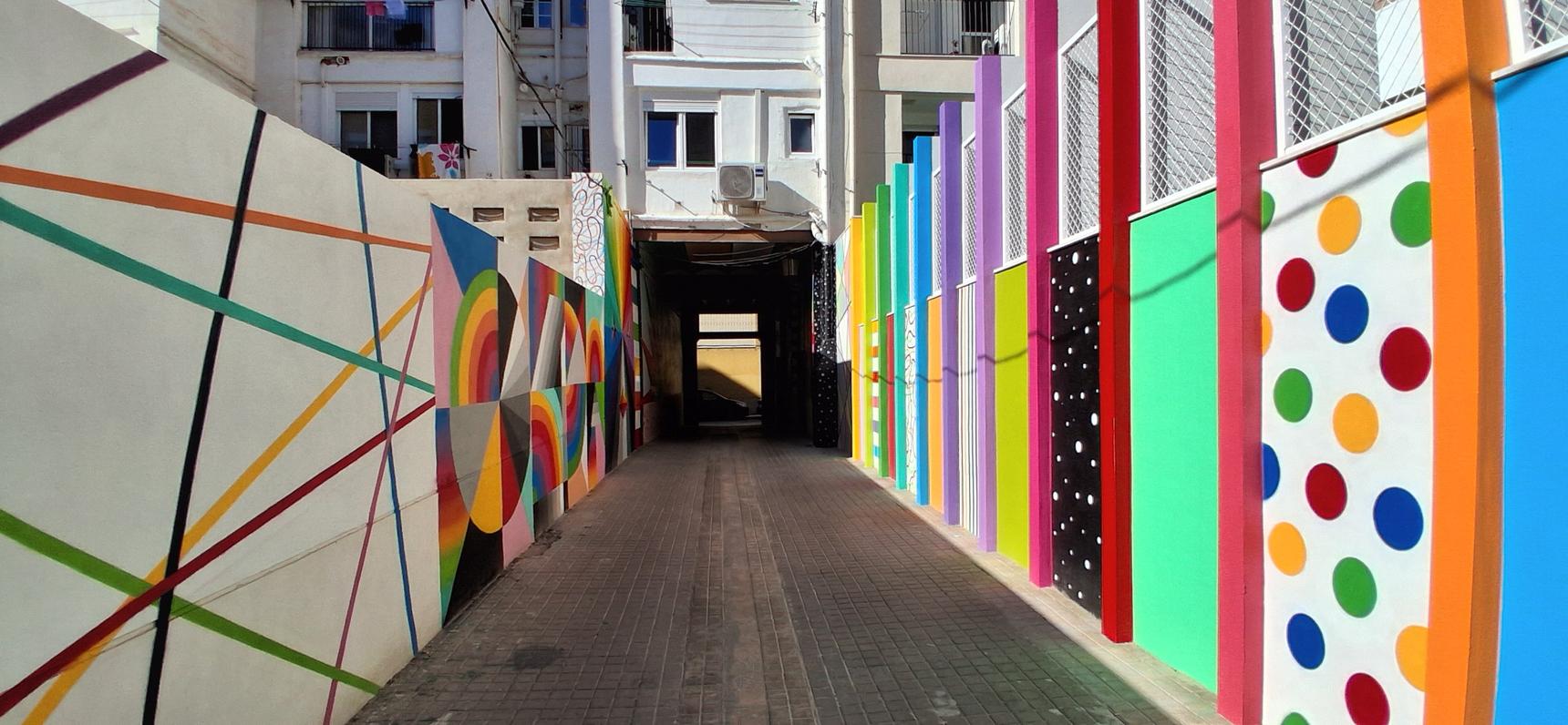 The artist Okuda San Miguel has created a new large-scale mural in Valencia, entitled "The Corridor of Polylove", located on the façade of the Casa Caridad Nursery School on Calle Chilches. This work stands out for its vibrant colours and geometric shapes, marking a charitable collaboration aimed at improving the surroundings of the nursery school, which was unveiled in March 2026
