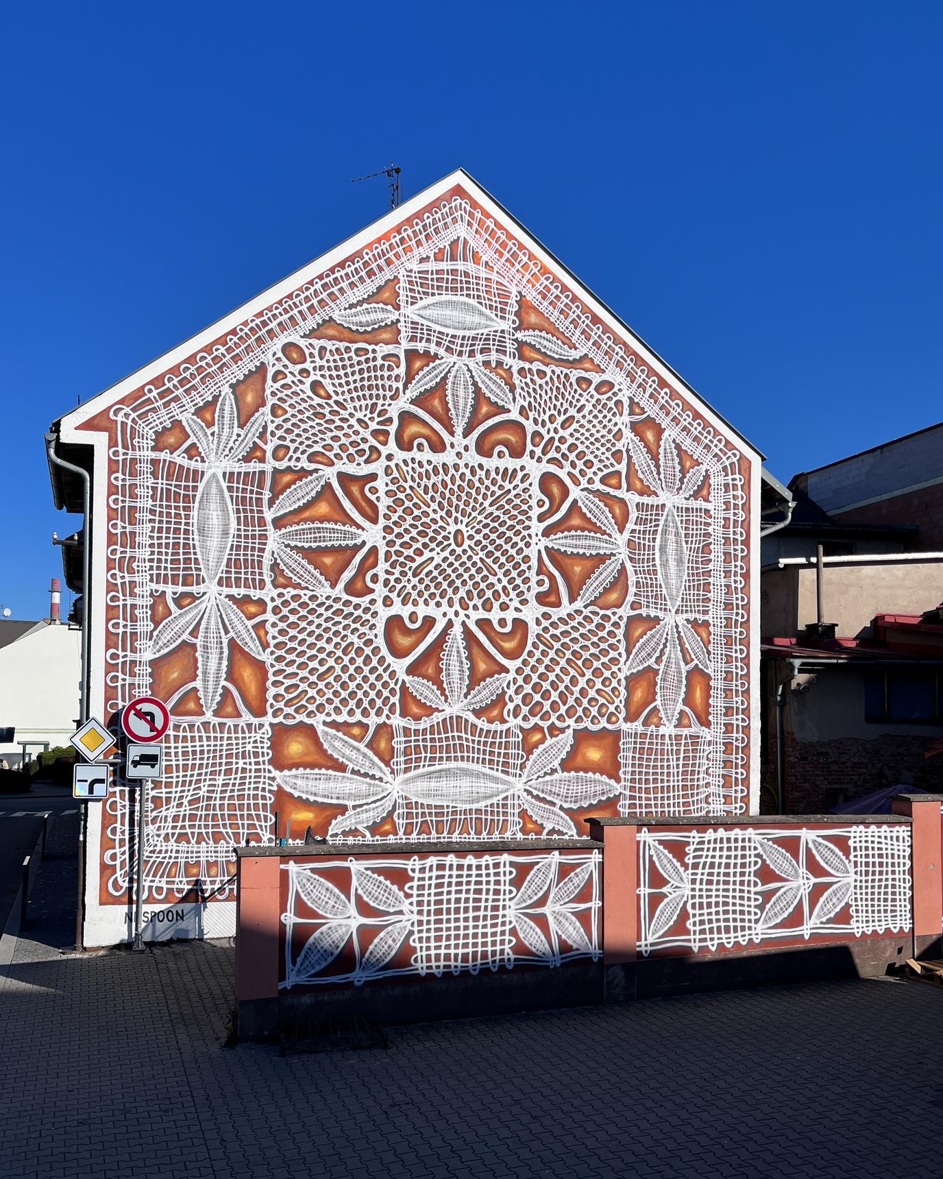 Art-work inspired by a lace pattern designed in 1920 by the pioneer of modern Czech lace, Marie Sedláčková Serbousková.