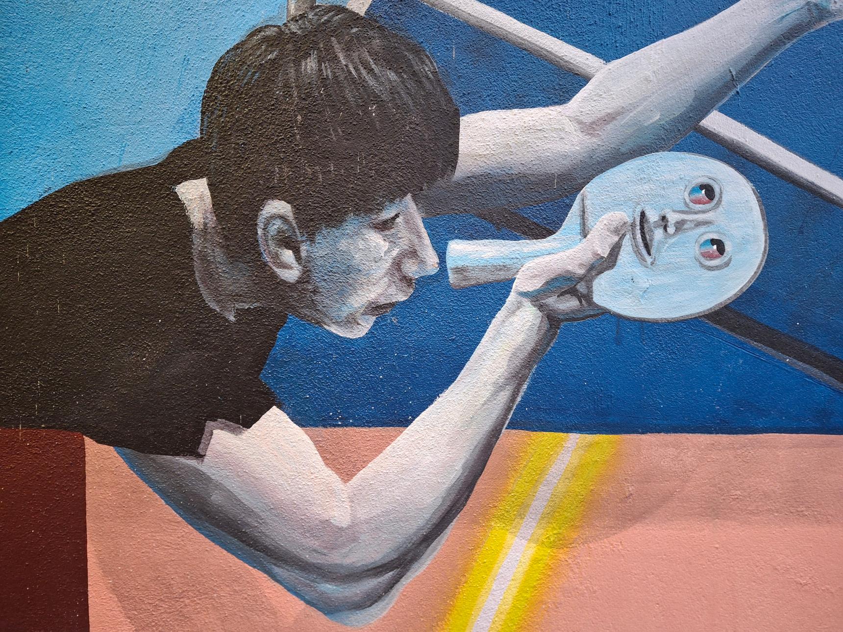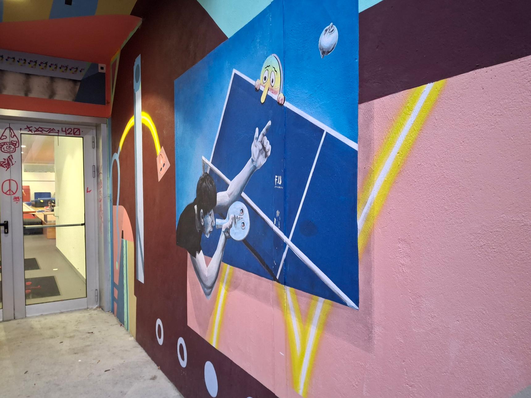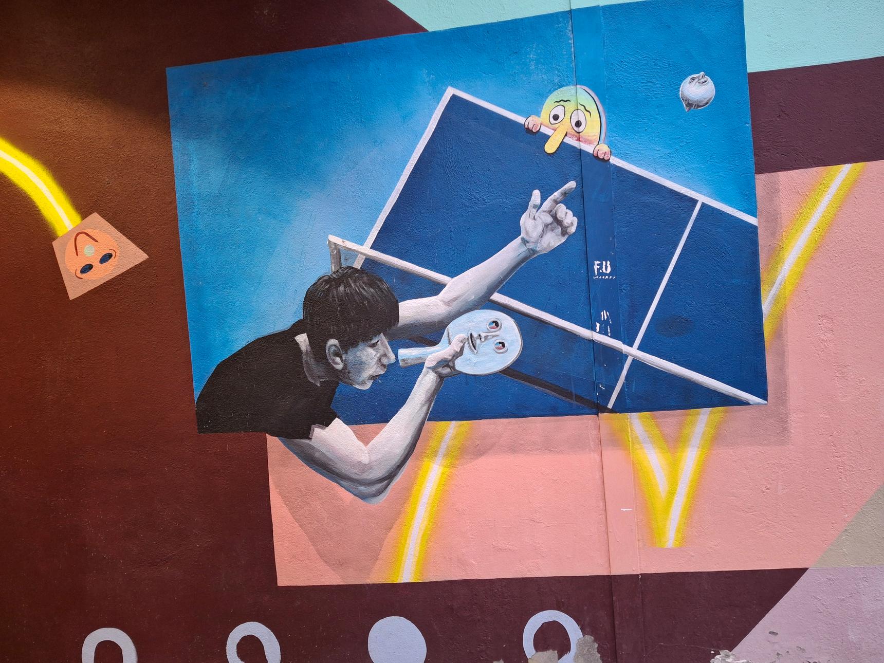 Este mural está en el Pabellón Deportivo Municipal de Romil.