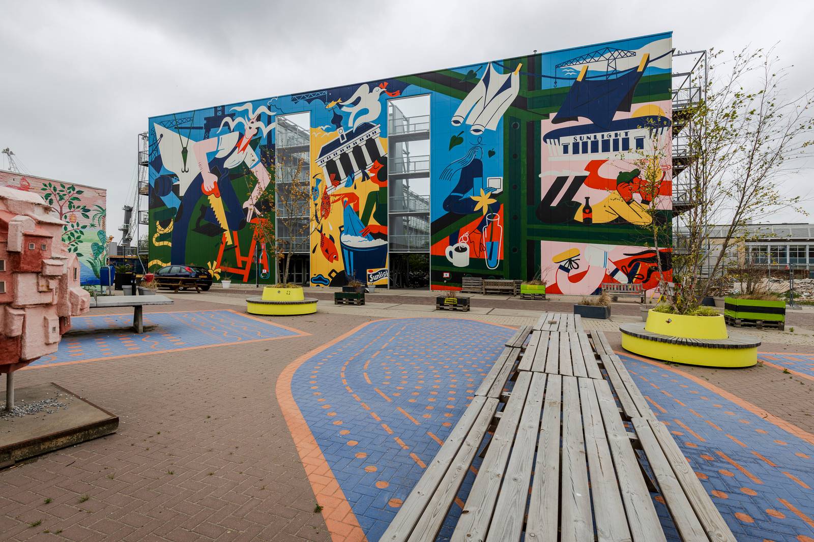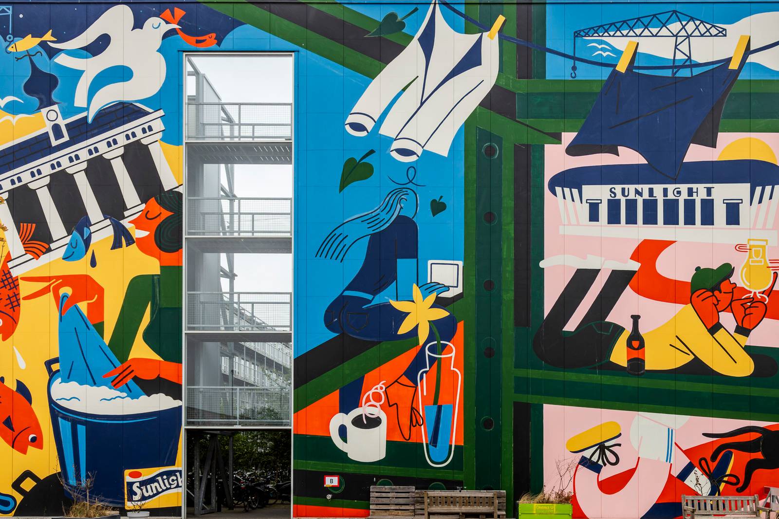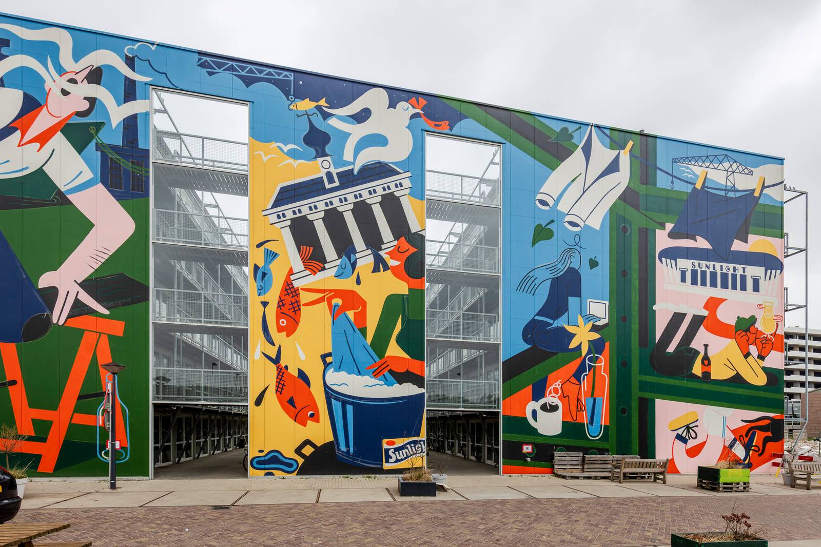 Deze muurschildering verteld het verhaal van de Unilever locatie die hier gevestigd was. Het is een drieluik dat de historie van de zeepfabriek toont, verwijst naar de haven en visserij in Vlaardingen en een kijkje in de toekomst geeft.