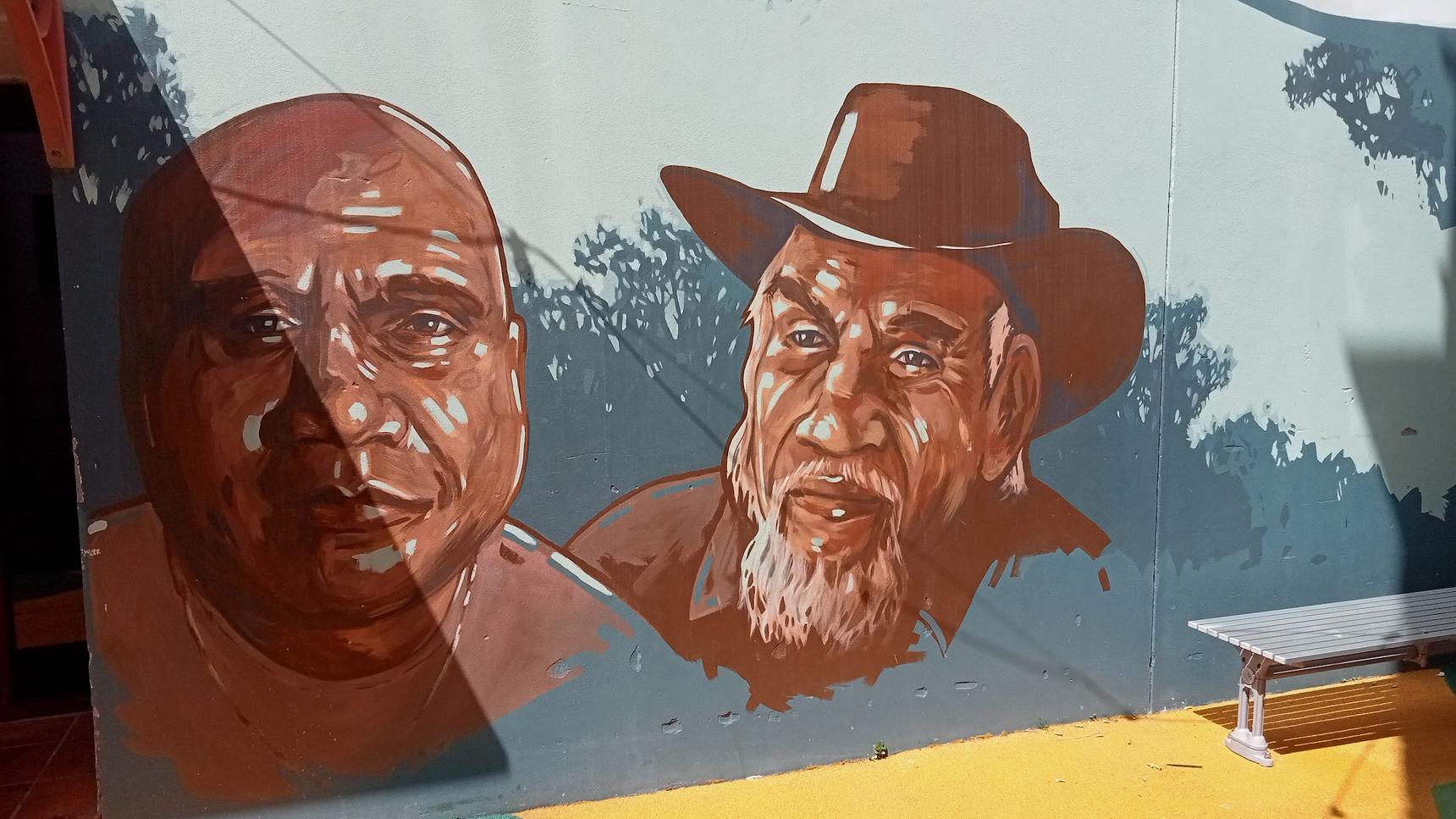 portraits of First Nations musicians (completed during the inaugural Aus Music Festival), on a wall of Little Liebig Lane, entrance next to 160 Timor St