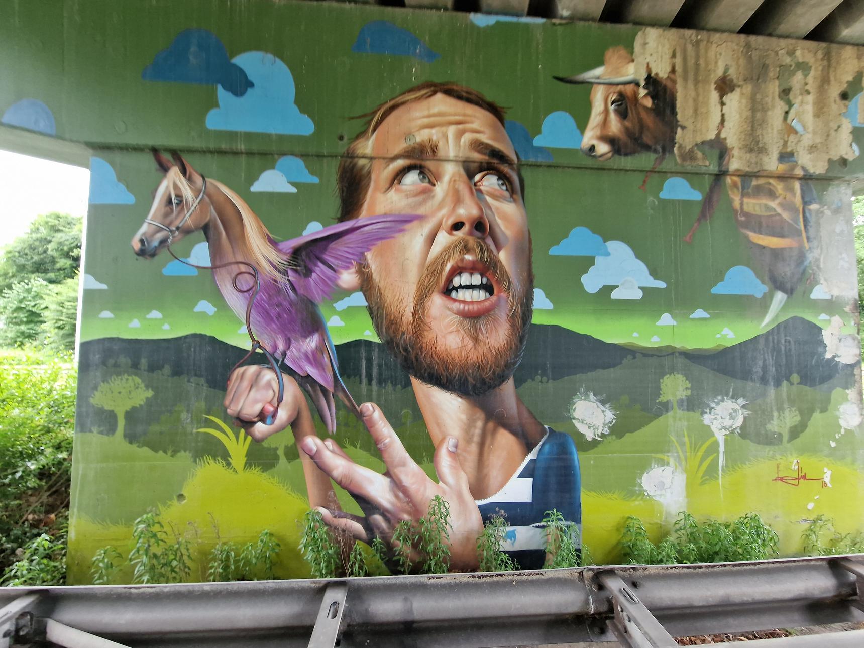 A project from de Gemeente Weert, Angelo Martinus, Nash and Sapo. In September 2016 Nash invited his friends Steve Locatelli and Belin to paint the Hushoverbrug together with him and Sapo during the Bospop Festival. In March 2018 Sapo invited Studio Giftig to join him painting the last two walls.