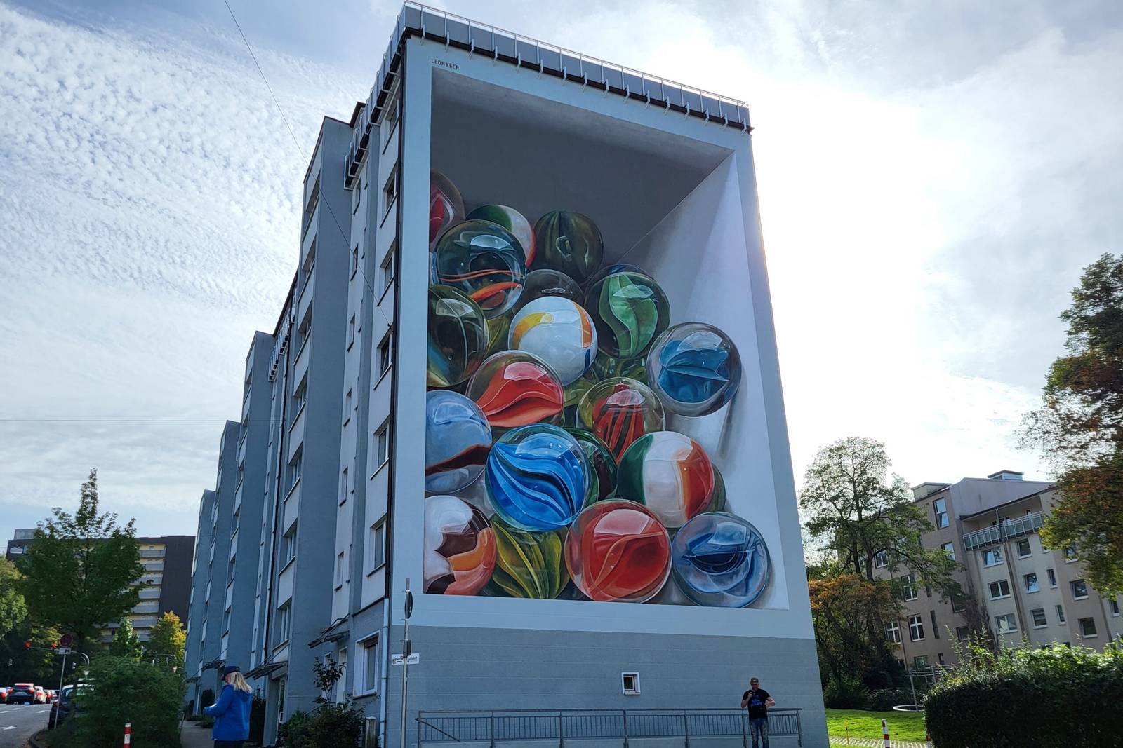 THE ARTIST - Dutch artist Leon Keer from Utrecht has been traveling extensively with his street art for over 25 years. He is currently considered one of the leading artists in the field of anamorphic street art. He is always aware of the playfulness and beauty in contrast to the decay around him—a contrast he reinforces in his work and uses as a metaphor for life.