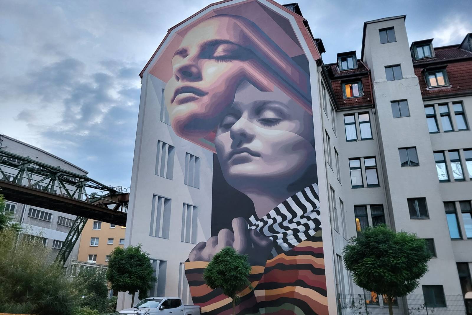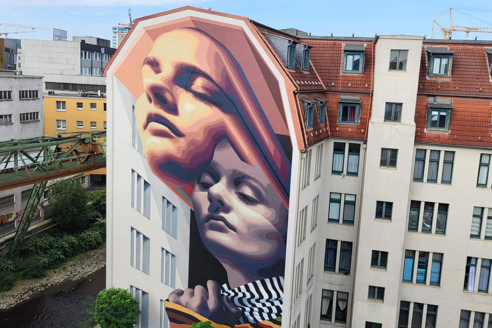 THE ARTIST - The Argentinian street art duo Medianeras is based in Barcelona; the name translates as "side walls," whitch is what the duo focuses on. The connection between two buildings, and thus also the connection between people and space. Their androgynous figures focus on the essential—the people themselves.